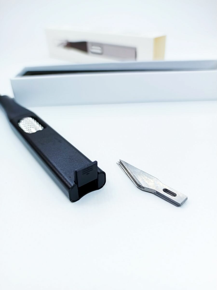 | Подробная комплектация | 1 нож-скальпель, 5 сменных лезвий, индивидуальная коробка |