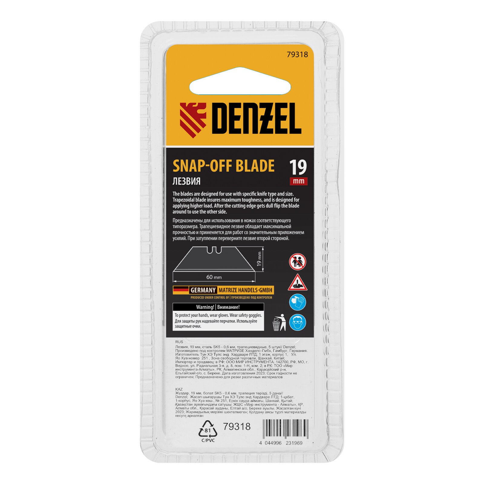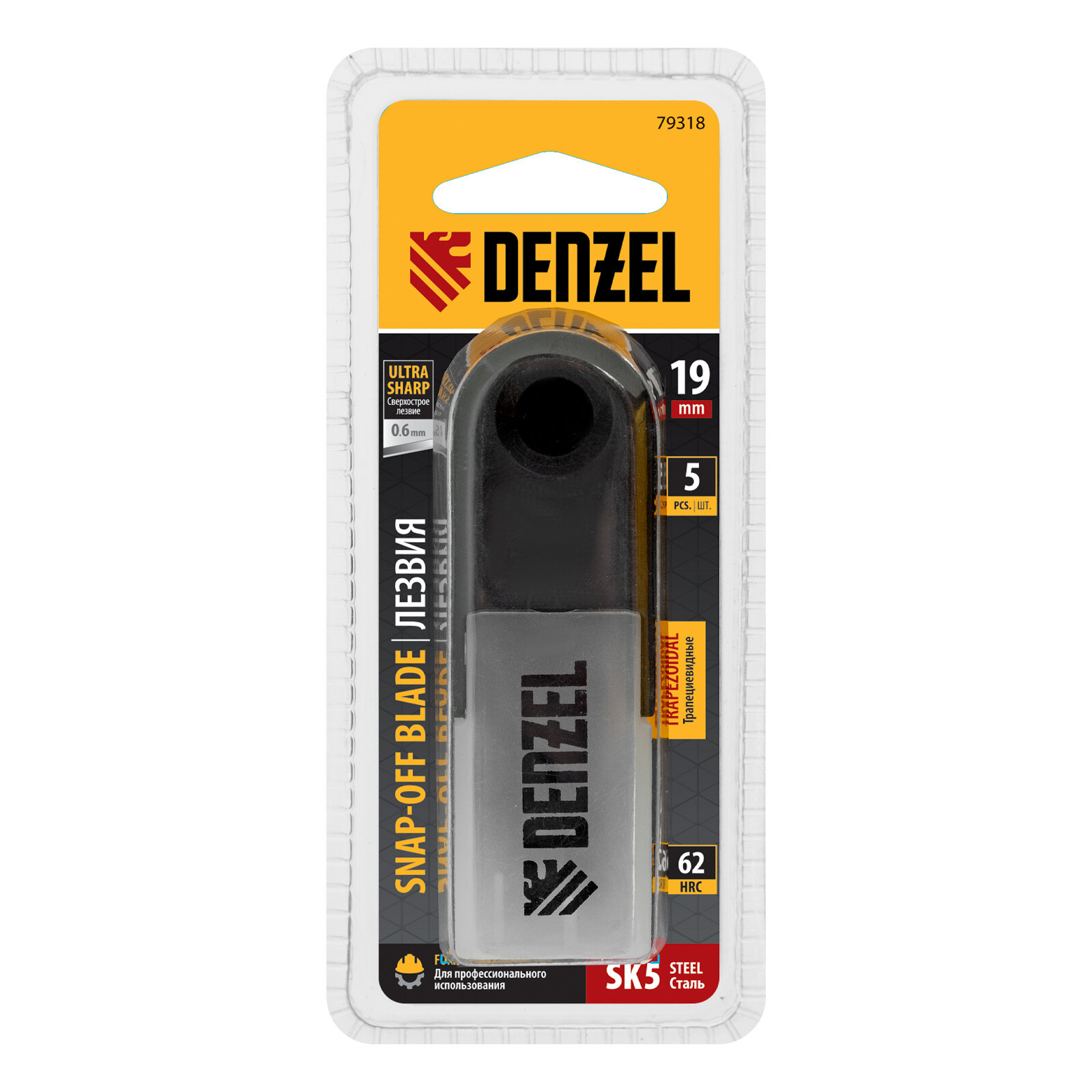 Лезвия, 19 мм, сталь SK5 - 0,6 мм, трапециевидные, 5 штук// Denzel 79318 интересное: