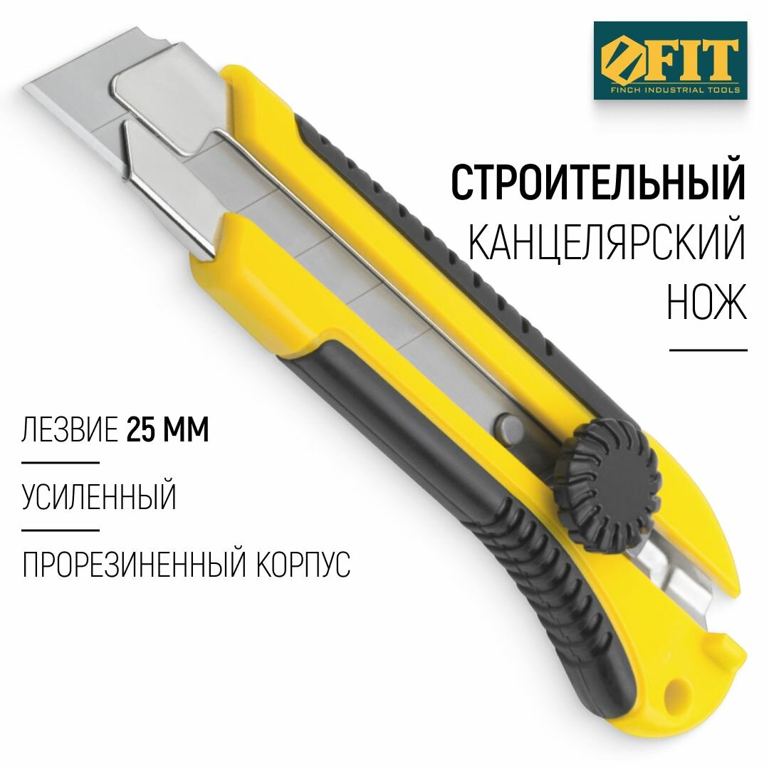 Купить FIT Канцелярский нож строительный, сегментированное лезвие 25 мм усиленный прорезиненный