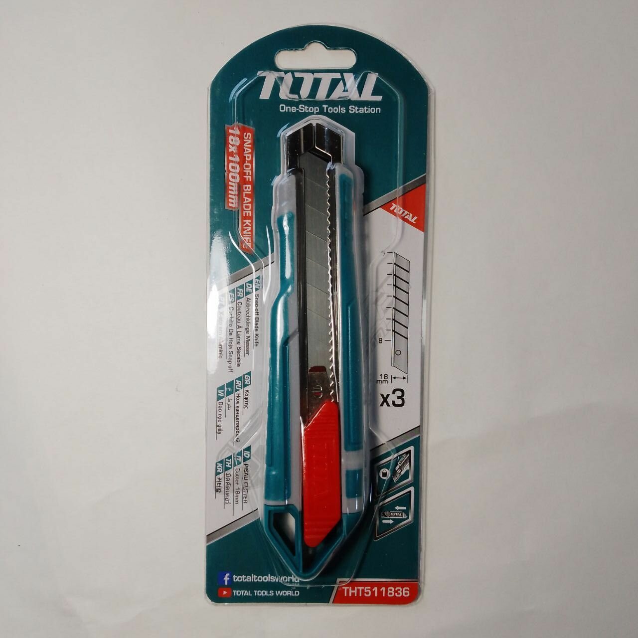 Канцелярский нож TOTAL, выдвижное лезвие, 169мм, бирюзовый, в комплекте 3 лезвия интересное: