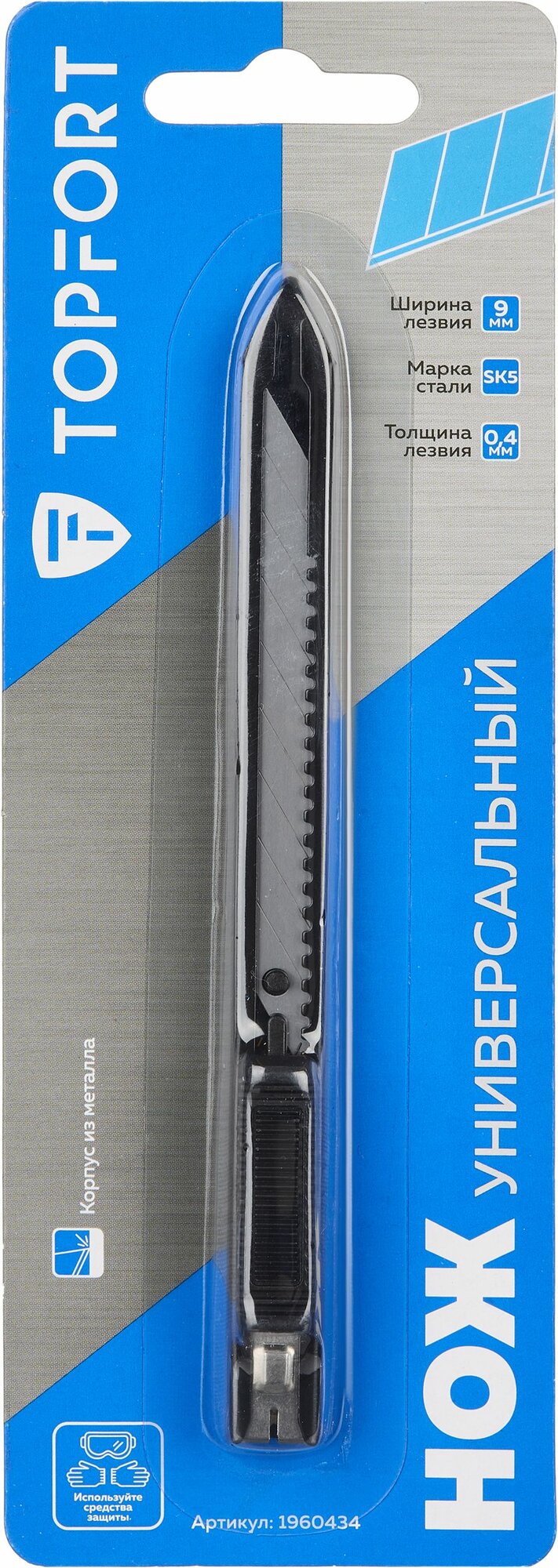 Нож универсальный, TOPFORT, 9 мм, с металлической направляющей и фиксатором лезвия