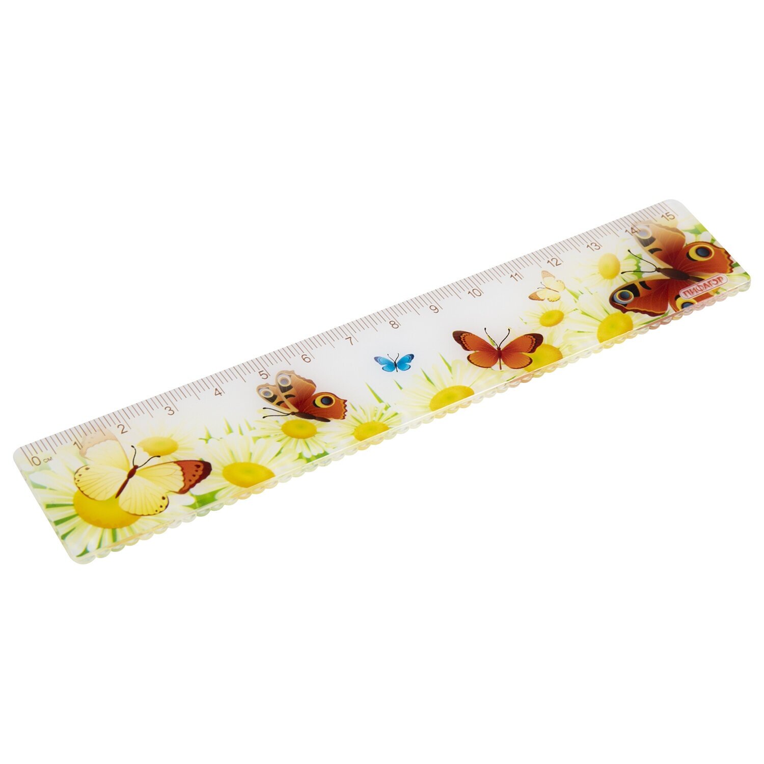 Линейка Пифагор пластик 15 см "бабочки", цветная печать, с волнистым краем (210635)