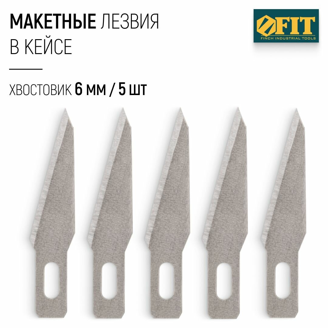 Купить FIT Лезвия для макетного ножа скальпеля, набор 5 шт в кейсе, хвостовик 6 мм