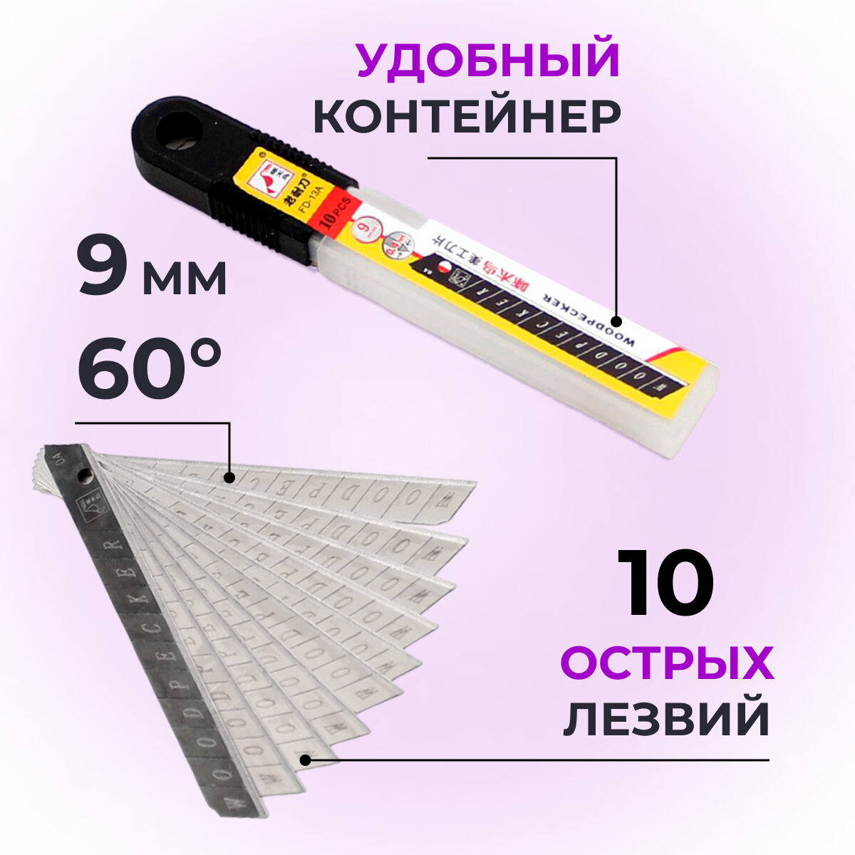 Лезвия для канцелярских ножей WoodPecker FD-13A 9мм 60гр 10шт интересное: