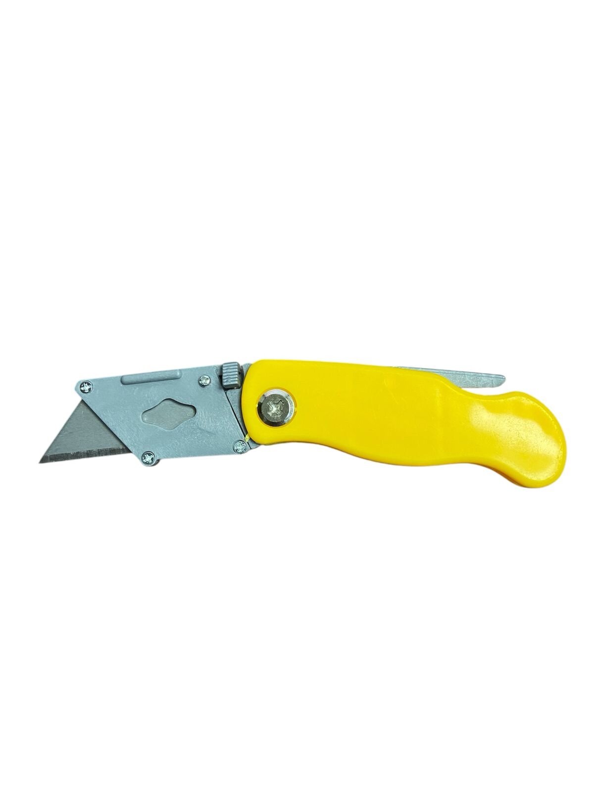 Купить Нож канцелярский, складной, 3 сменных лезвия, пластиковая рукоятка, желтый