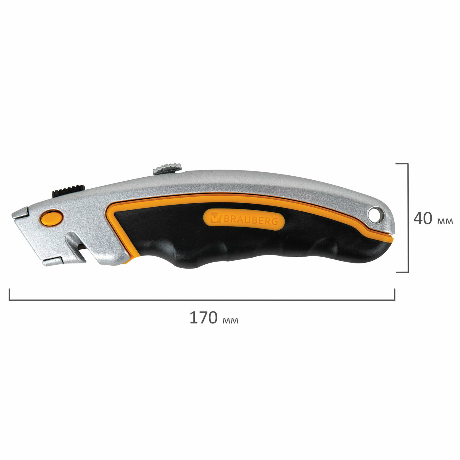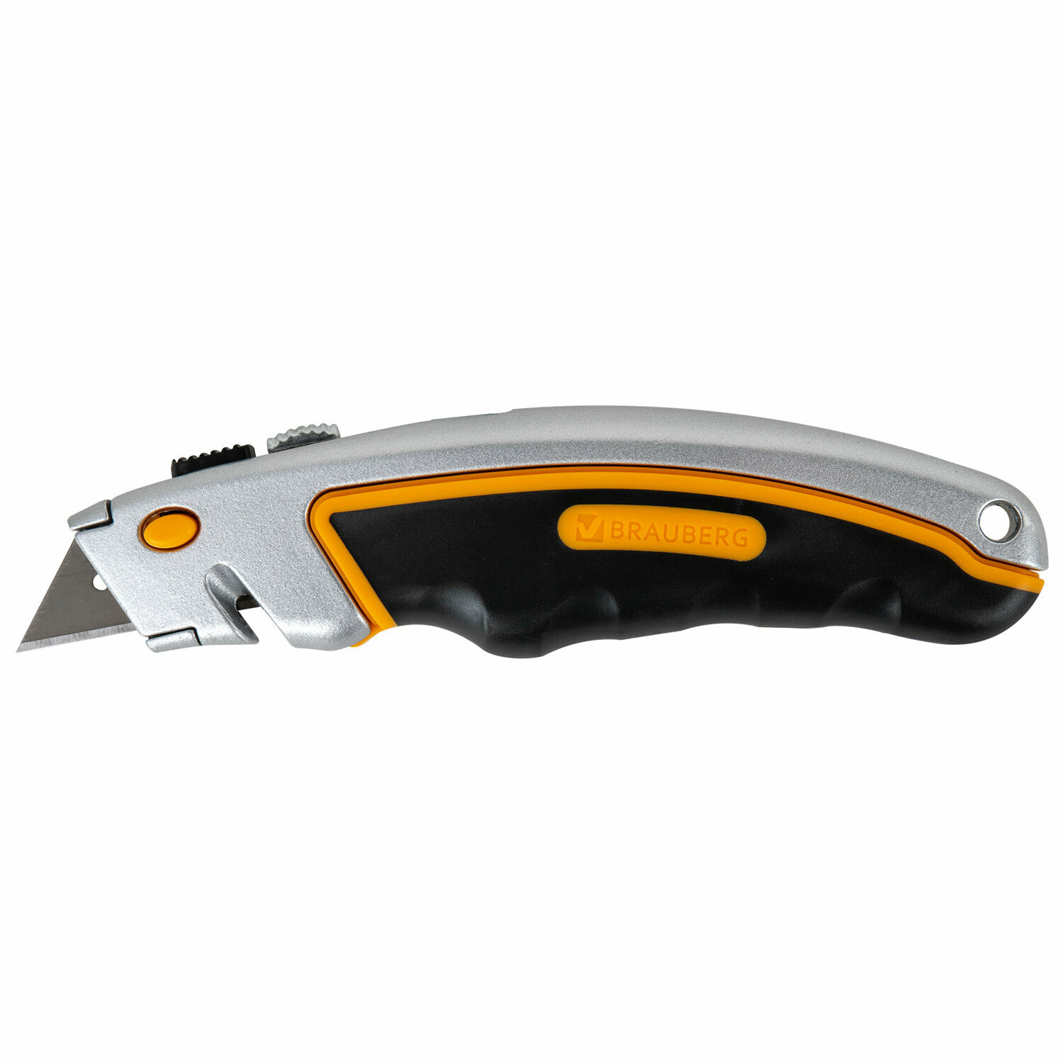 Нож канцелярский строительный универсальный мощный, ширина лезвия 18 мм, автофиксатор, алюминиевый, резиновые вставки, Brauberg Heavy duty, 238735 интересное: