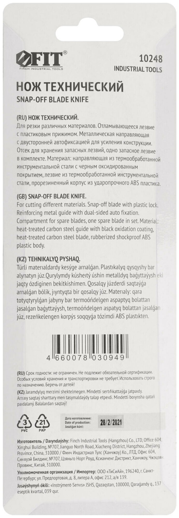 FIT Канцелярский нож строительный, лезвие SK-2 18 мм ударопрочный для обоев скотча картона