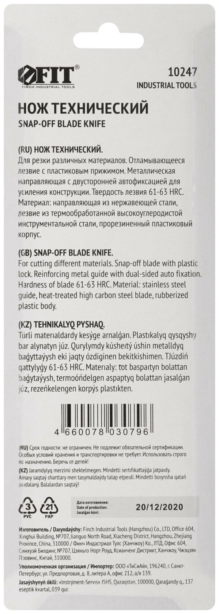 FIT Канцелярский нож строительный, лезвие SK-2 18 мм ударопрочный для обоев скотча картона