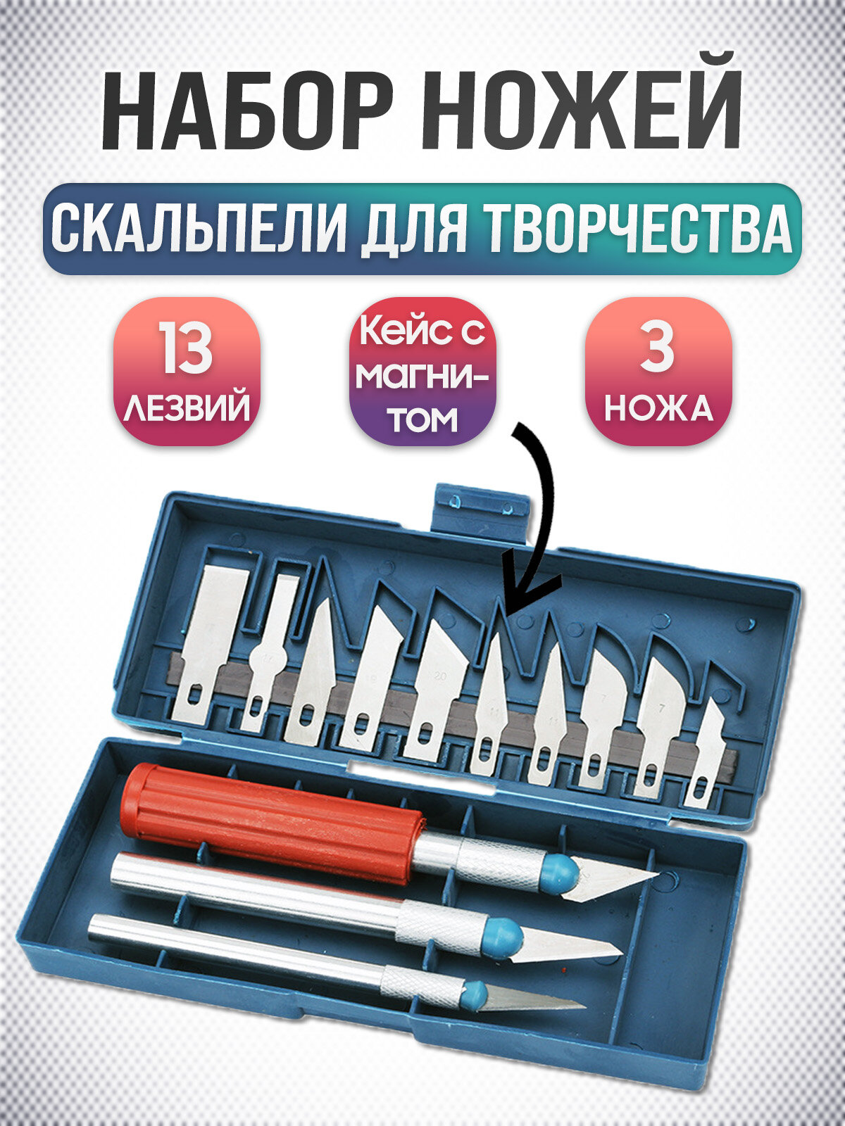 Нож моделиста, 13 лезвий/ раскройный, макетный нож/ канцелярский скальпель для творчества и моделирования интересное: