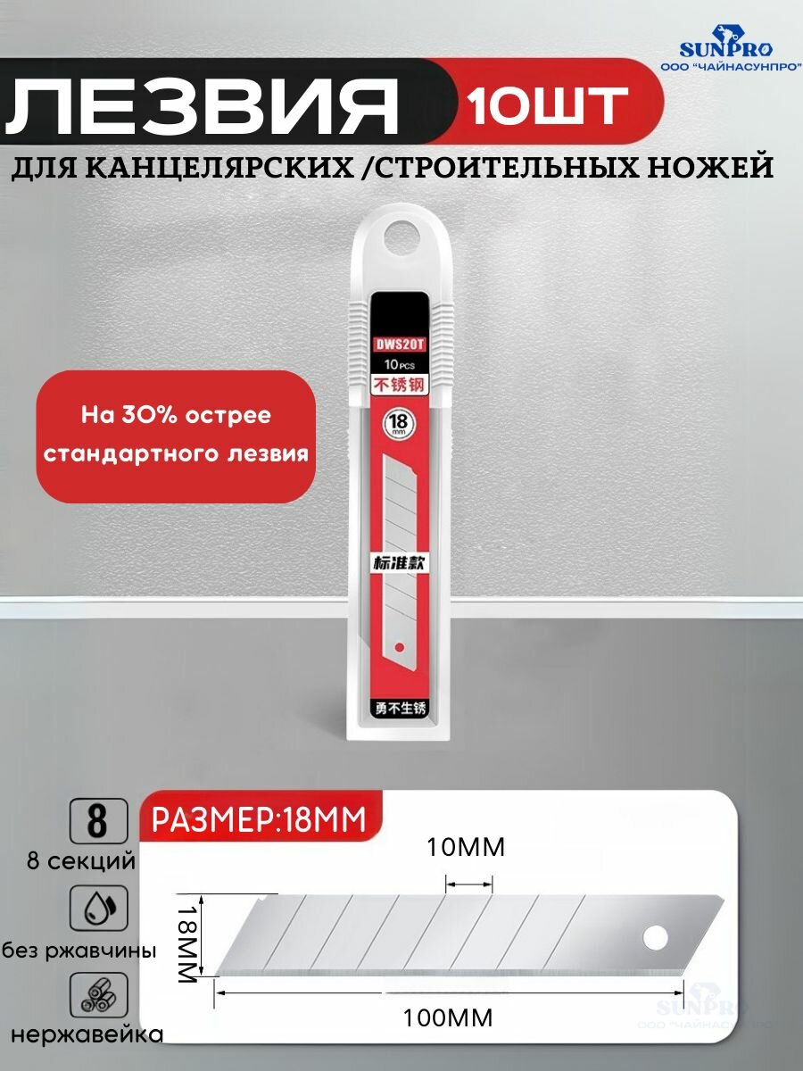 Лезвия SUNPRO для строительного ножа 18 мм 10 шт / Лезвия сменные для канцелярского ножа интересное: