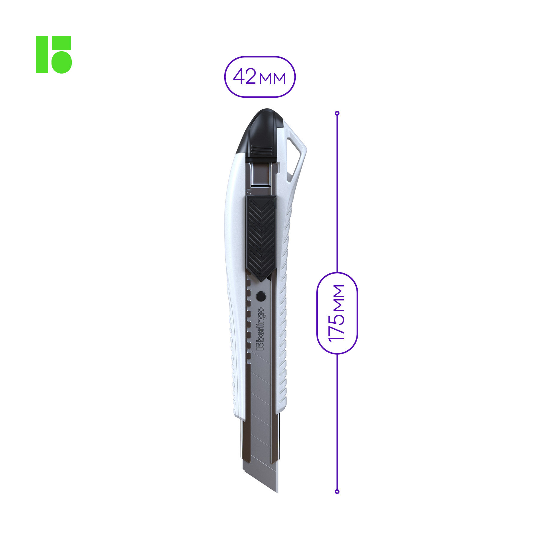 Купить Нож канцелярский 18мм Berlingo "Razzor 200", auto-lock, металл. направл, белый