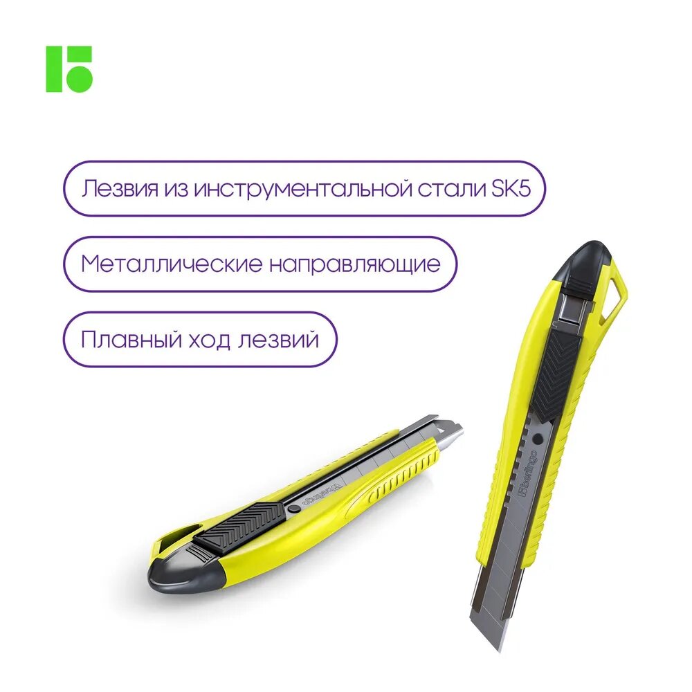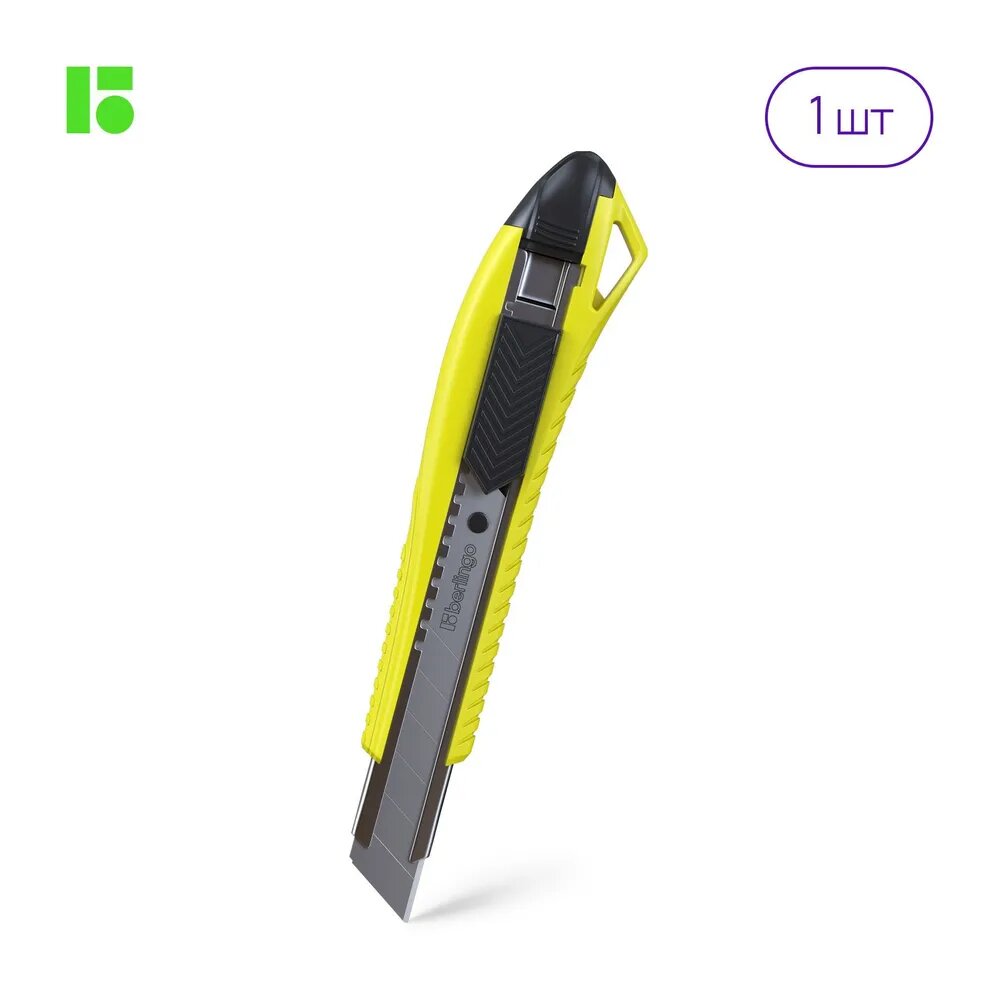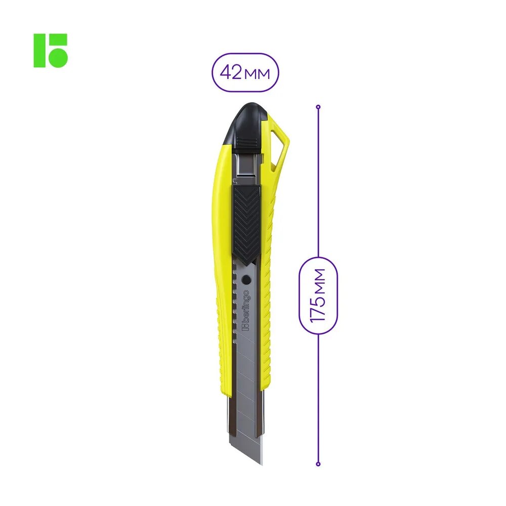 Купить Нож канцелярский 18мм Berlingo "Razzor 200", auto-lock, металл. направл, желтый