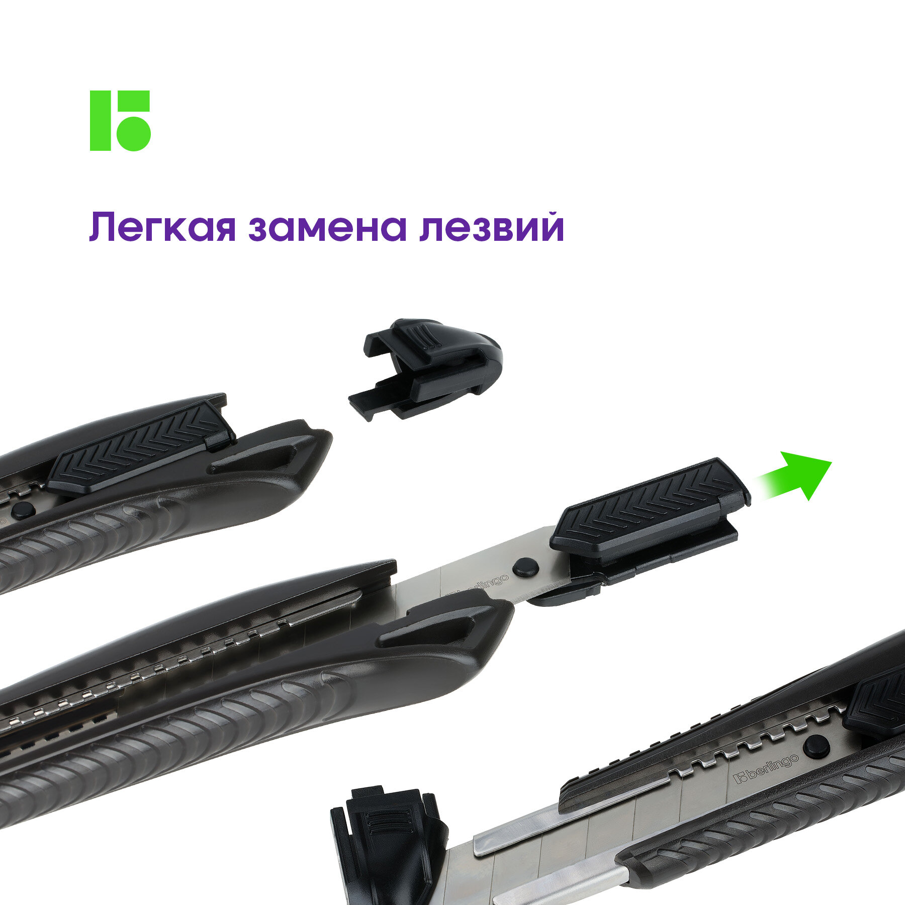 Купить Нож канцелярский 18мм Berlingo "Razzor 200", auto-lock, металл. направл, черный