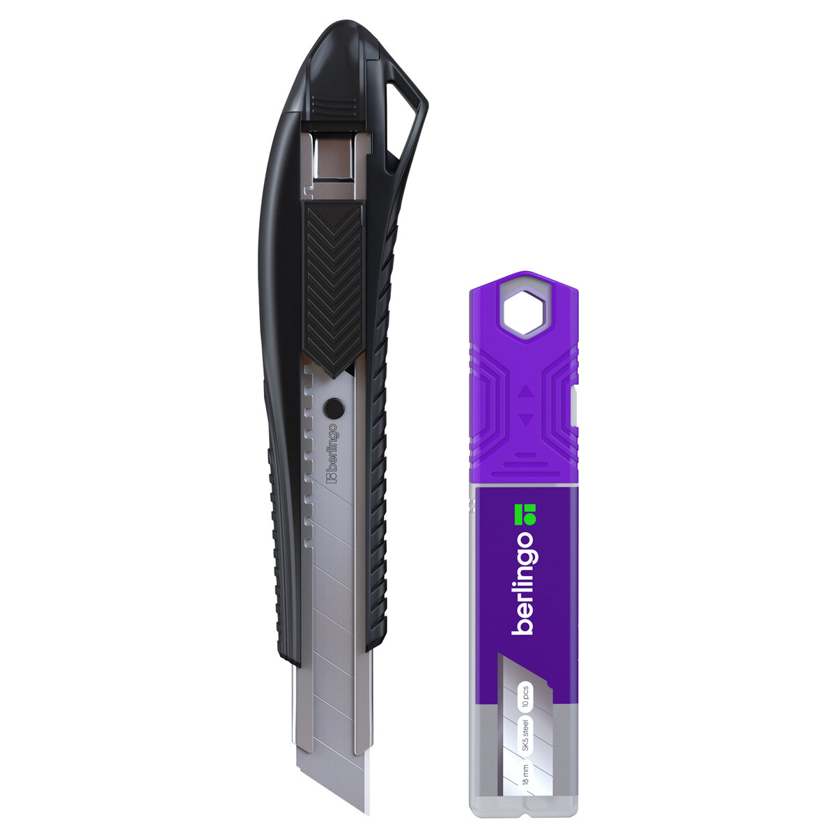 Нож канцелярский 18мм Berlingo "Razzor 100", push-lock, ассорти, европодвес 316184