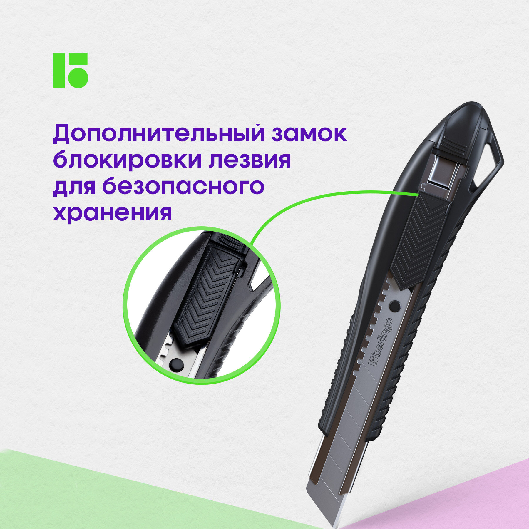 Нож канцелярский 9мм Berlingo Razzor 300, auto-lock, металл. направл, мягкие вставки, европодвес (BM4131)