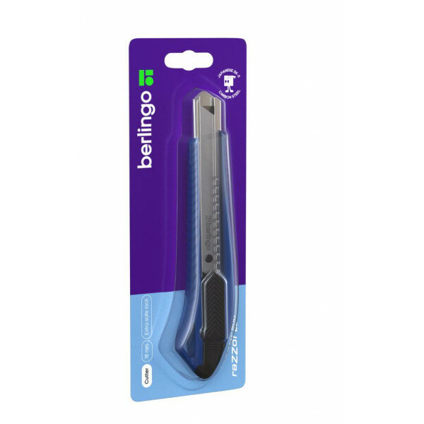 Купить Нож канцелярский 18мм Berlingo "Razzor 200", auto-lock, металл. направл, синий, европодвес 330389
