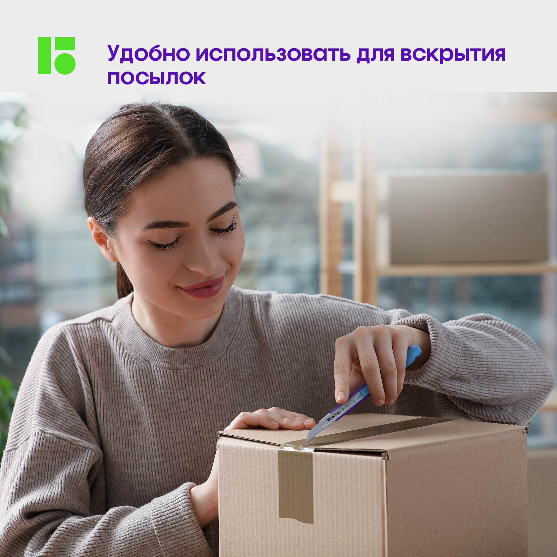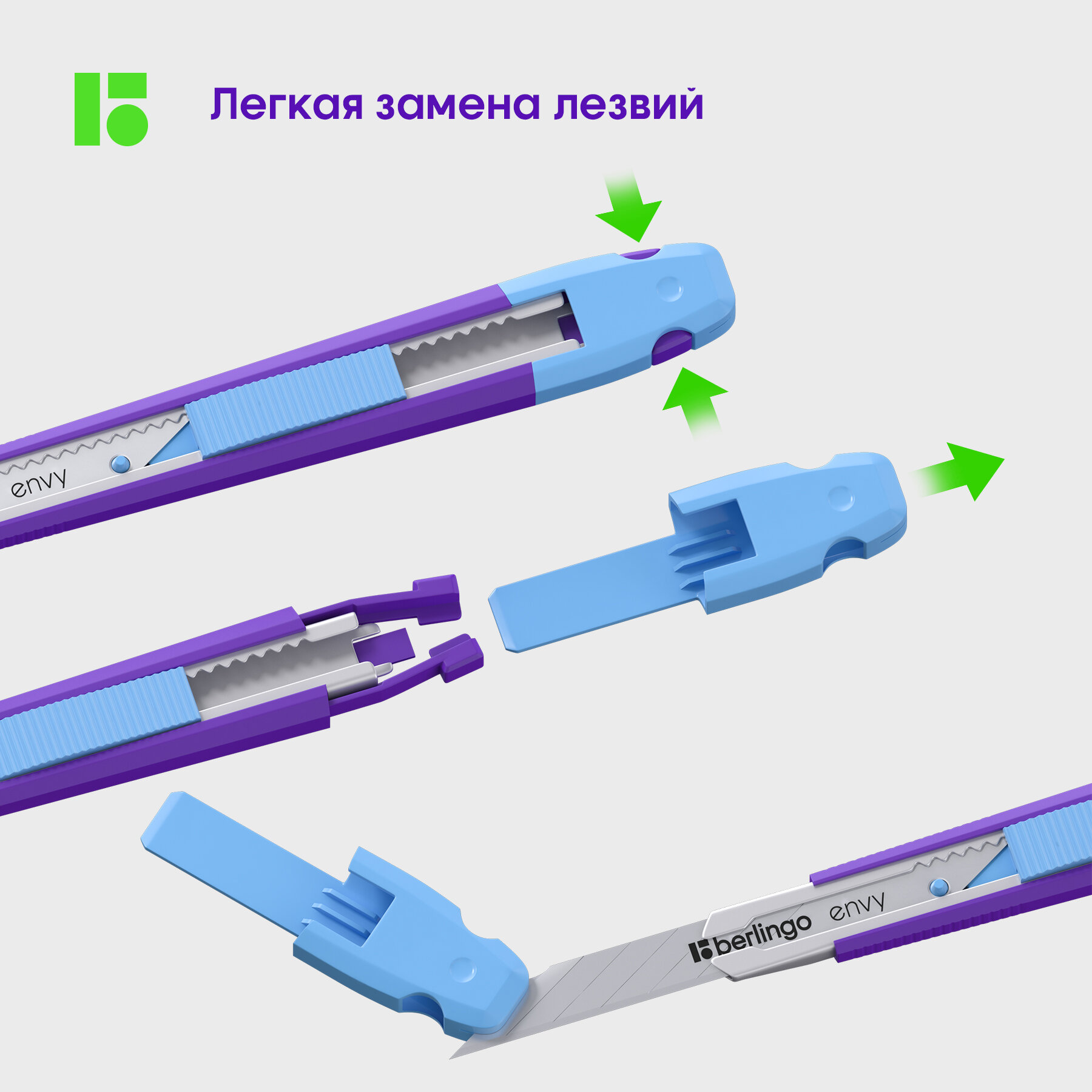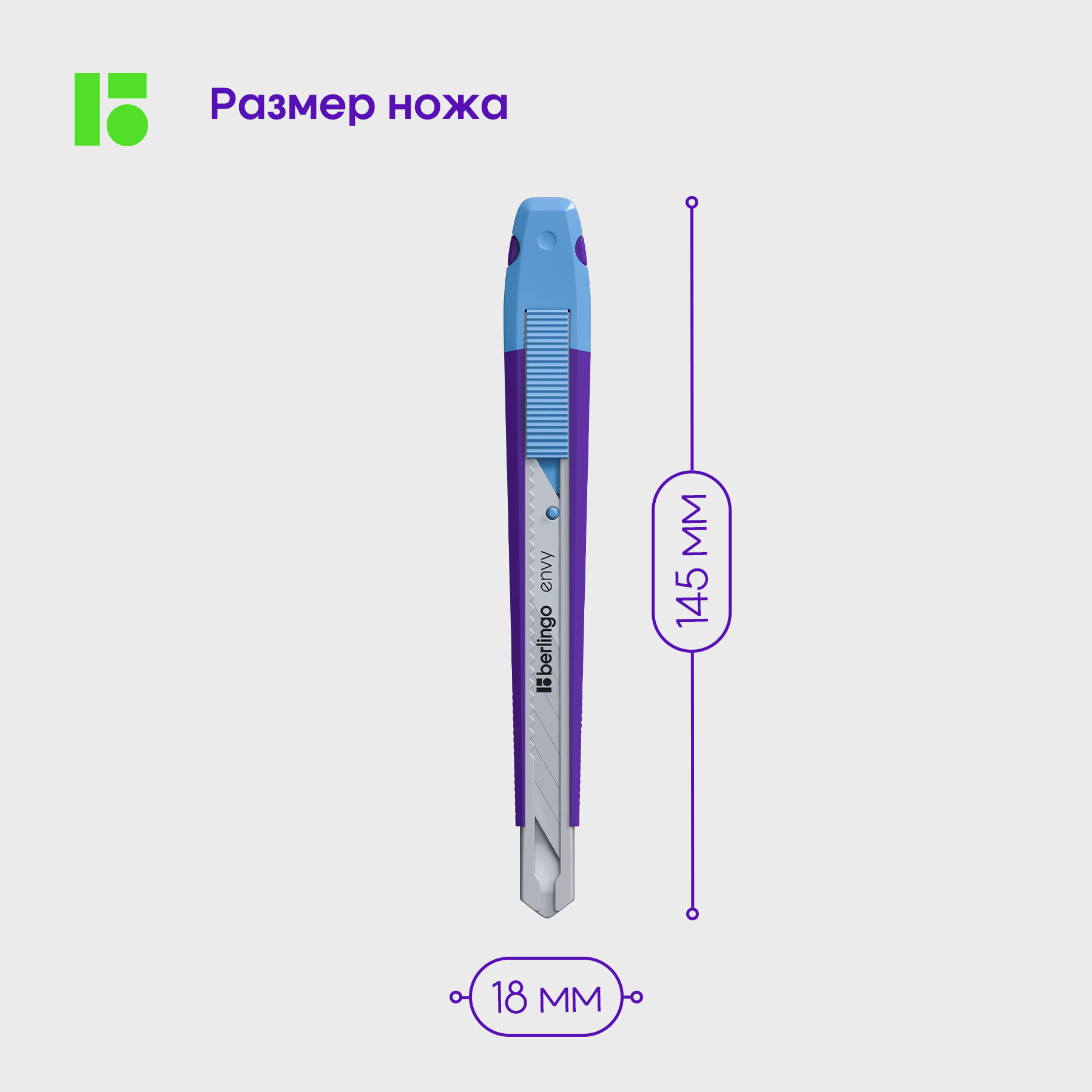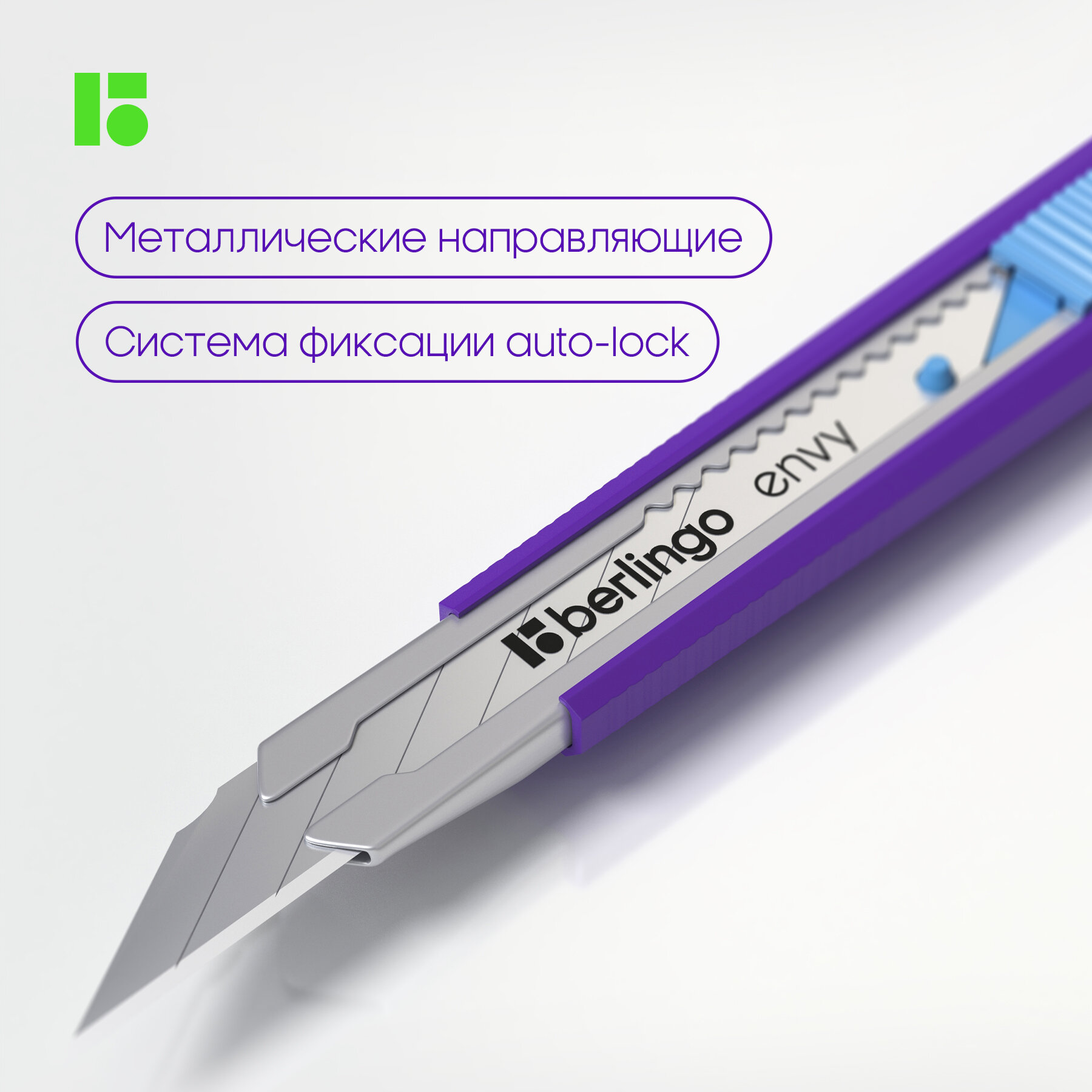 Нож канцелярский 9мм Berlingo Envy, auto-lock, голубой, европодвес интересное: