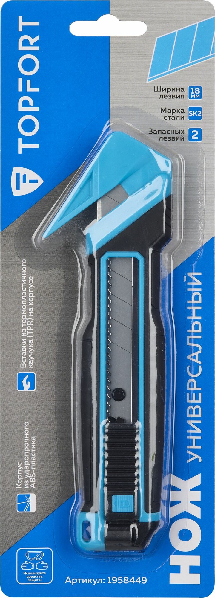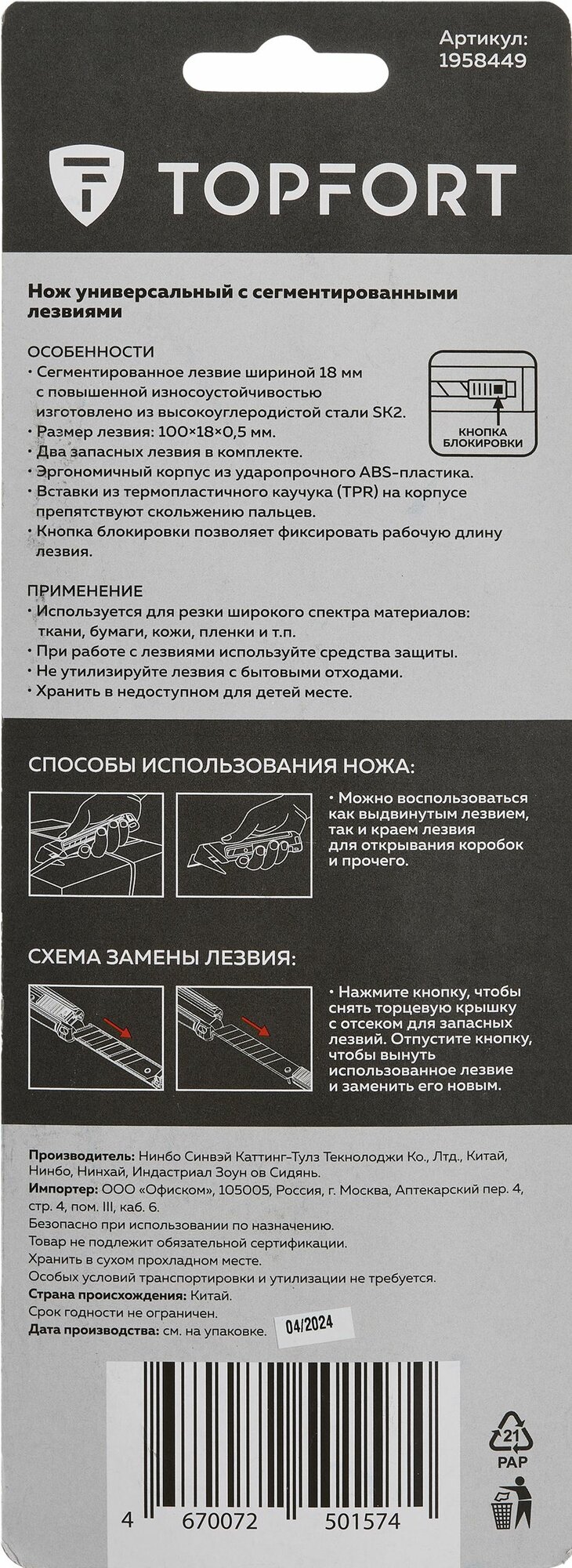 Нож универсальный, TOPFORT, мультифункциональный, ширина лезвия 18 мм, с фиксатором, + 2 запасных лезвия интересное: