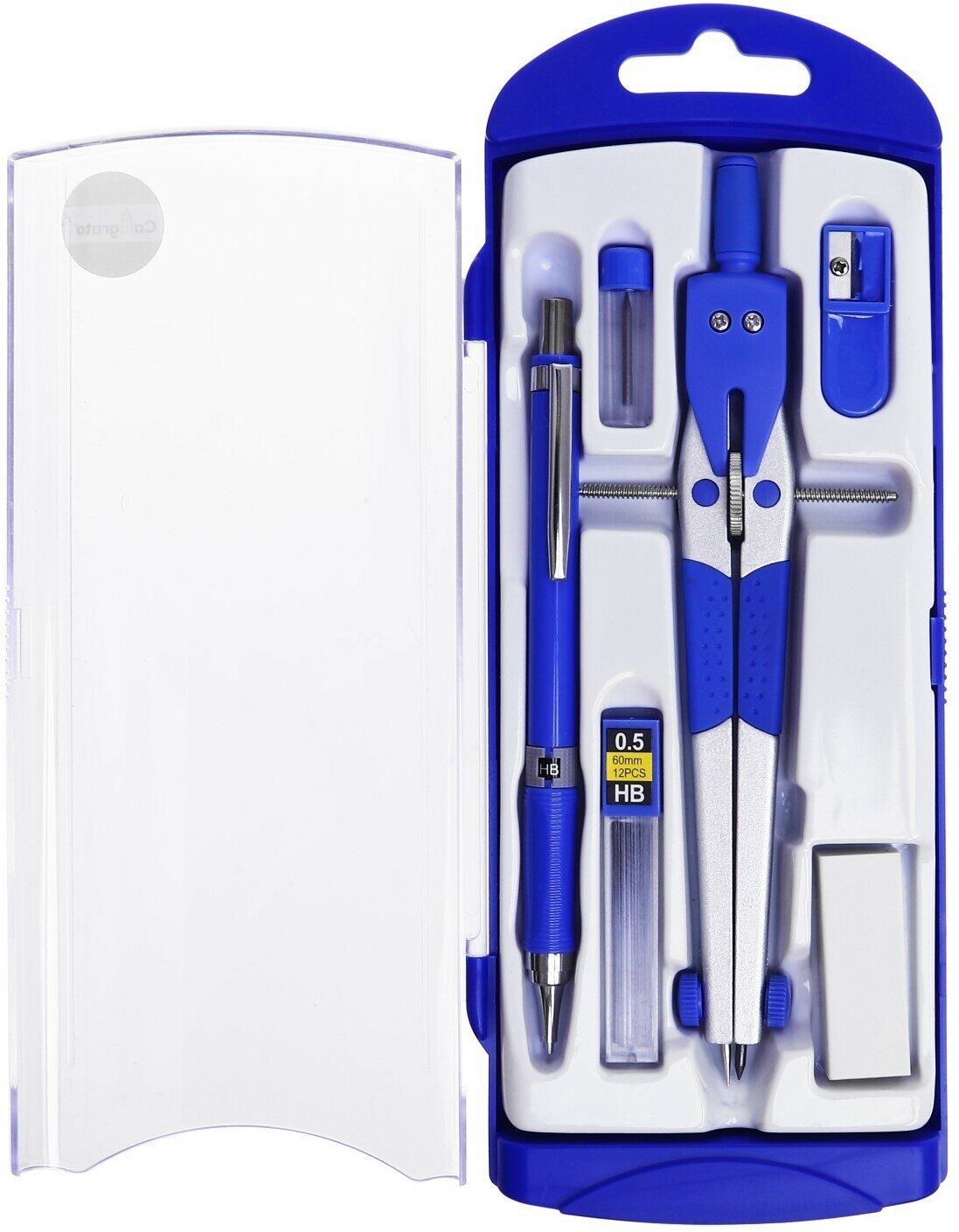 Готовальня, 6 предметов (циркуль, точилка, грифель, ластик, карандаш механический 0,5 мм, грифель НВ 0,5 мм) в пластиковом пенале./В упаковке шт: 1