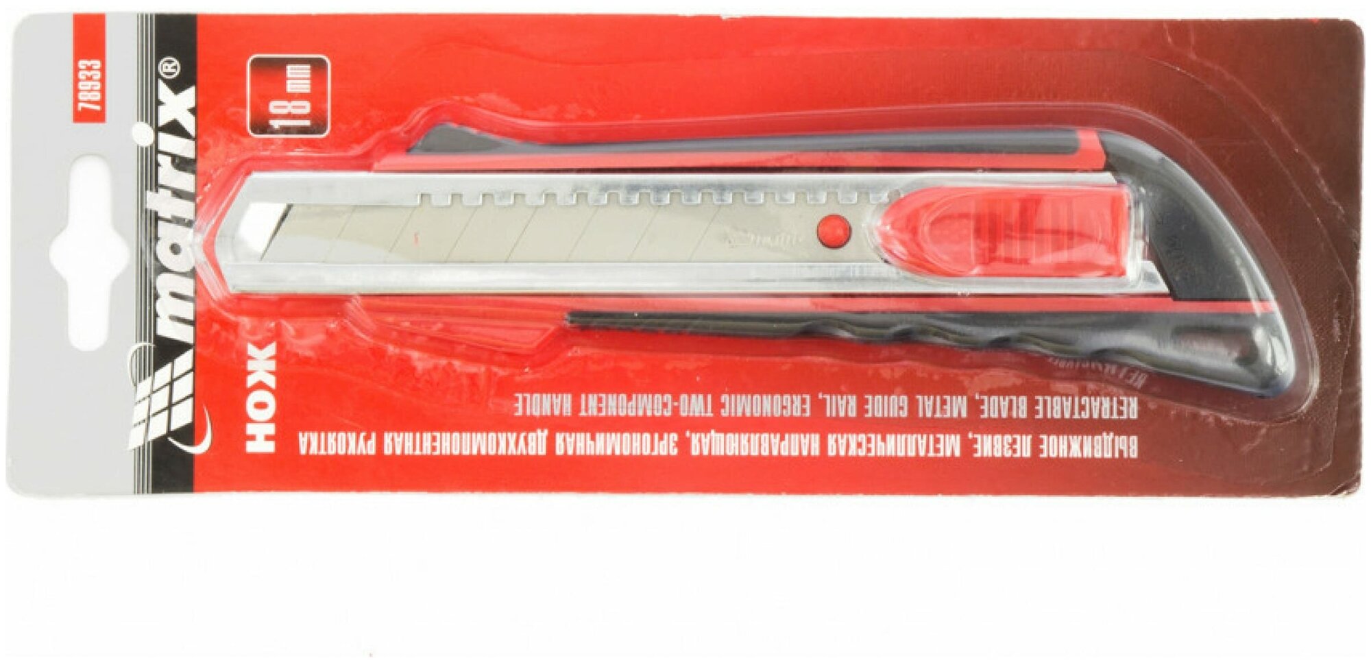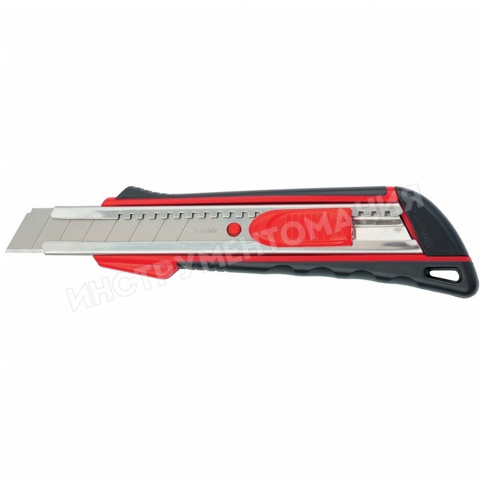 Нож Matrix 18 мм выдвижное лезвие, метал. направляющая, эргоном. двухкомпонентная рукоятка 78933 интересное: