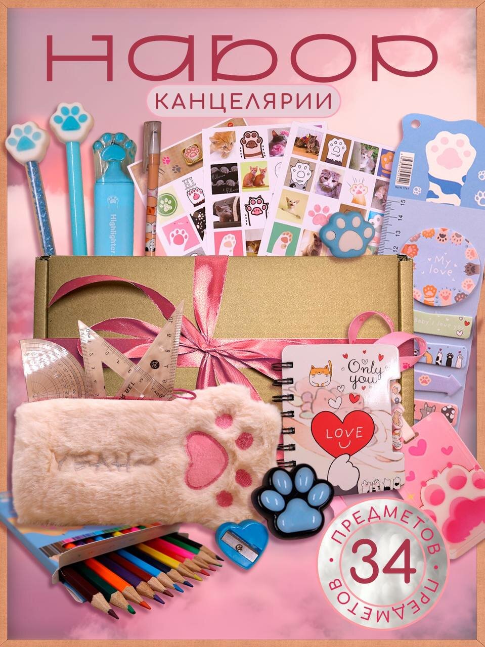 Подарочный канцелярский набор для девочек Лапки 34 интересное: