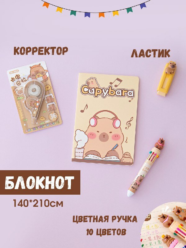 Подарочный набор "Капибара", канцелярия, тетрадь, пенал, ручки и др. интересное:
