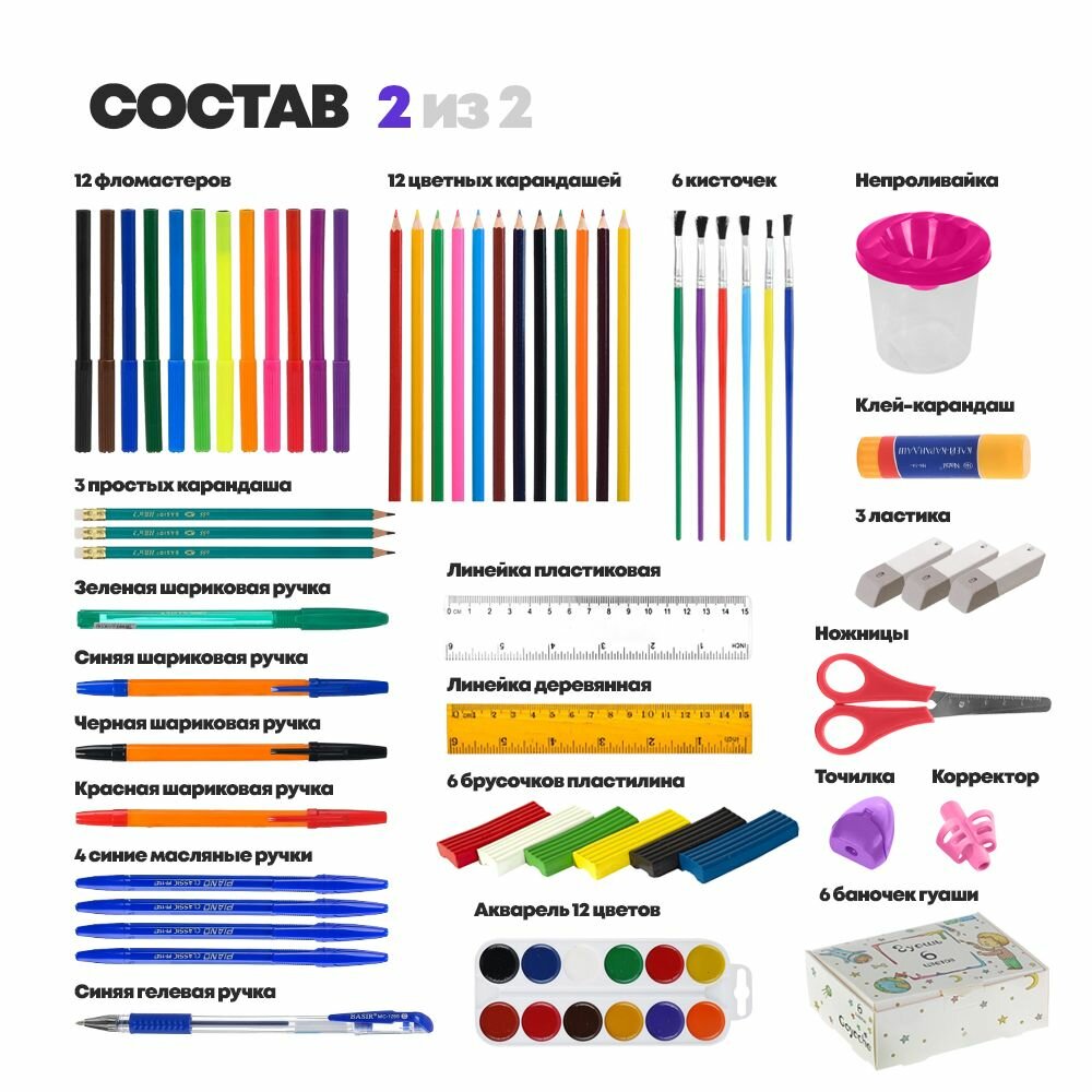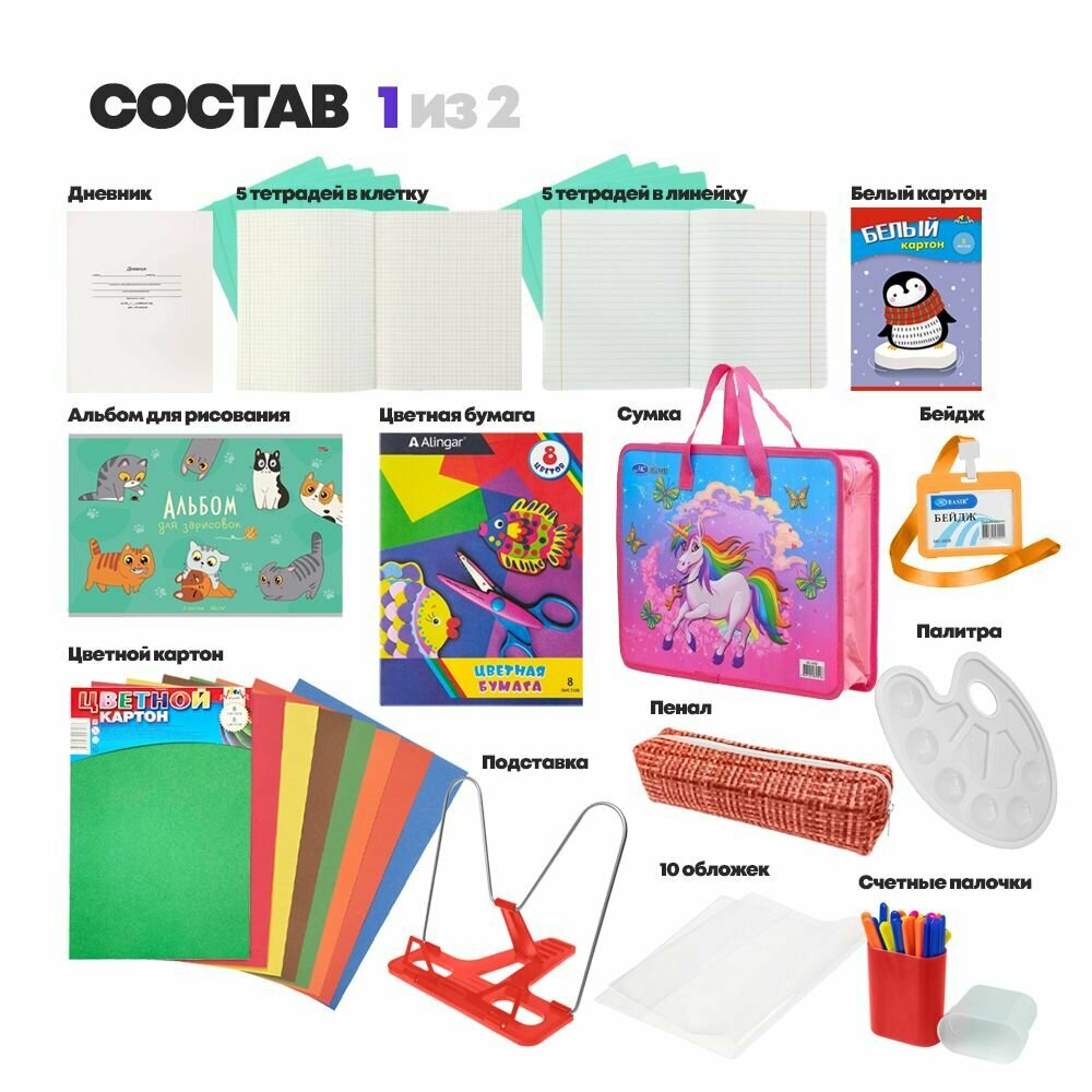 Купить Набор первоклассника 107 предметов, 35 наименований, канцелярские школьные принадлежности для девочки в 1 класс