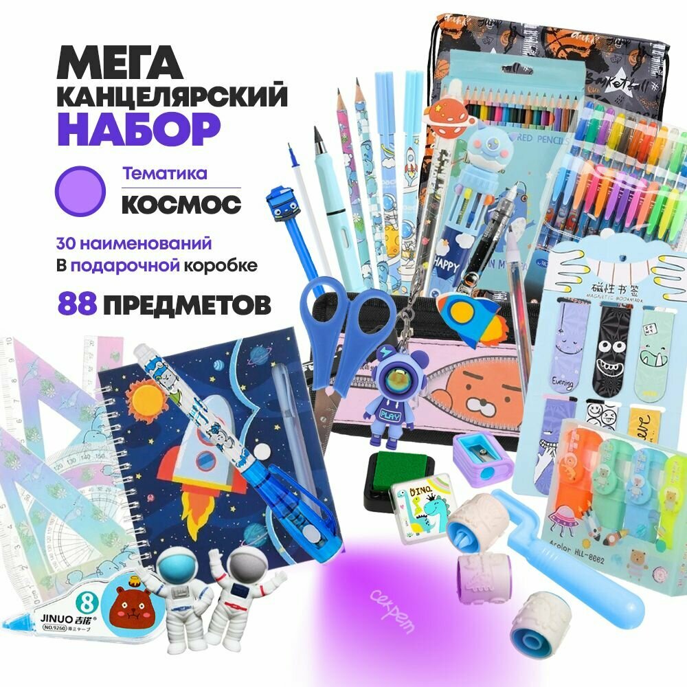Купить Канцелярский набор MC-Basir "Космонавт", в подарочной упаковке, для мальчиков, 88 предметов