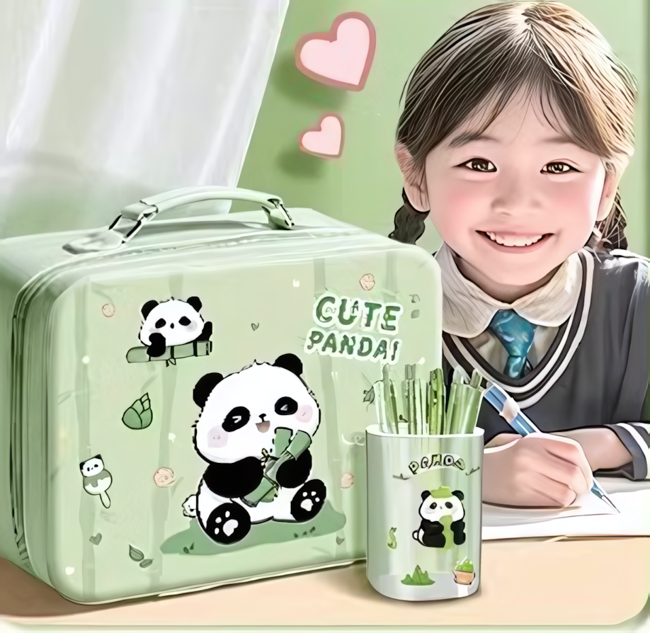 Канцелярский набор "Панда" в чемодане размером 32х23х15 см, цвет зеленый интересное:
