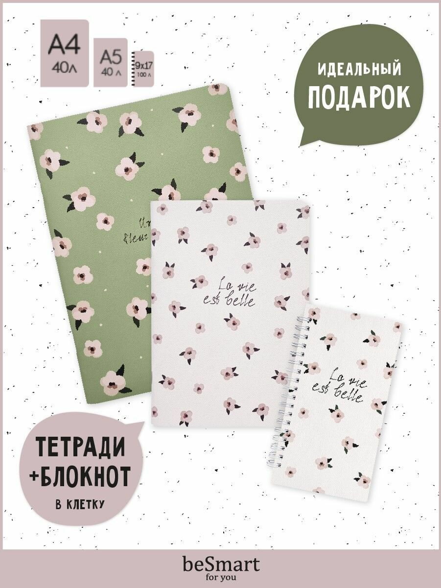 Купить Подарочный канцелярский набор Be Smart №7: тетради А5 и А4 на скрепке на 40л в клетку, блокнот 9х17 на спирали на 100л