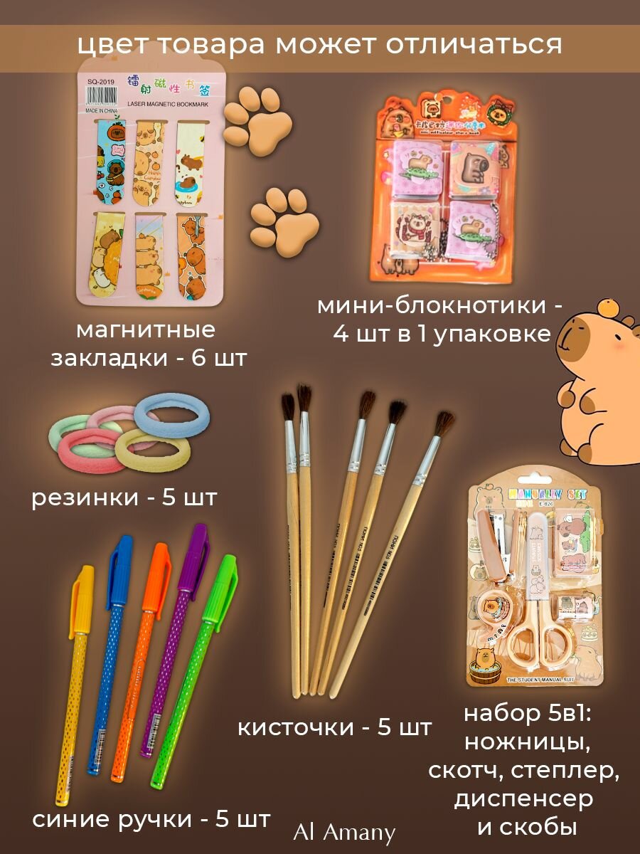 Купить Подарочный набор канцелярии для школы капибара 105 предметов, школьные принадлежности, подарок выпускнику и первокласснику
