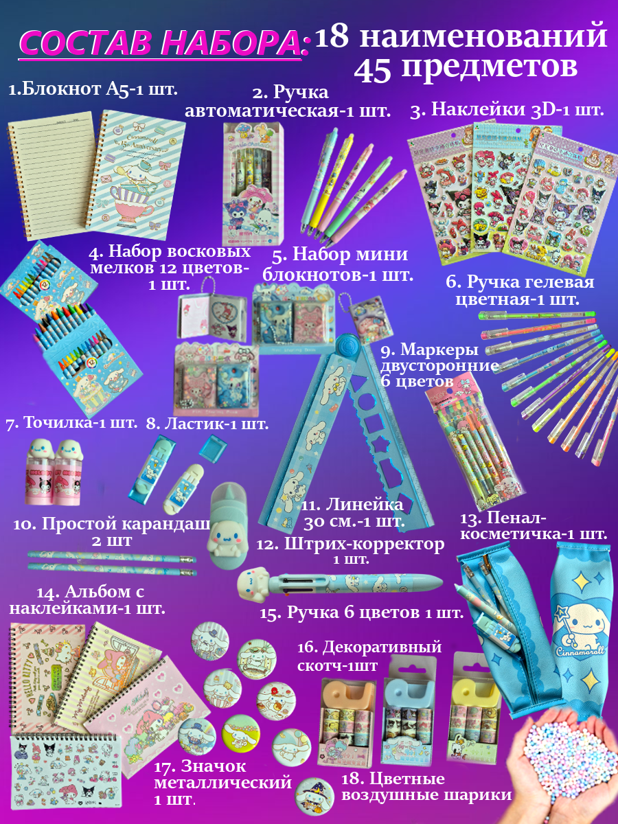 Подарок для девочки, бокс - сюрприз, Набор канцелярии с "Синаморолл"/ (Sinnamoroll) интересное: