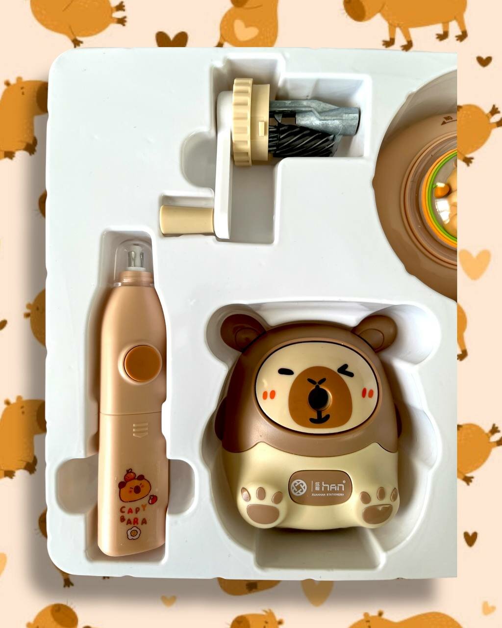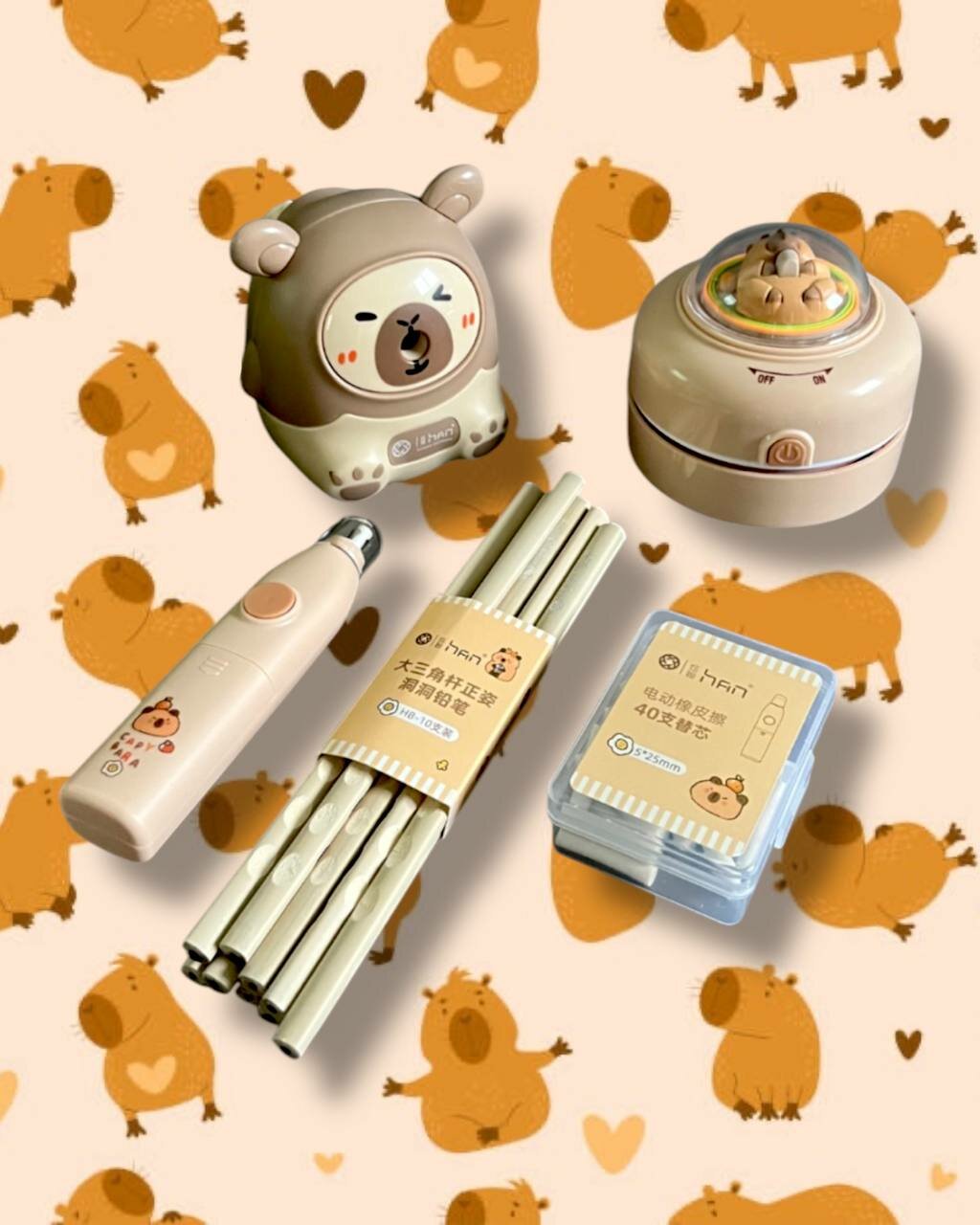 Канцелярский Электрический Набор "Капибала", 9 Предметов, Школа, Заводной Механизм интересное: