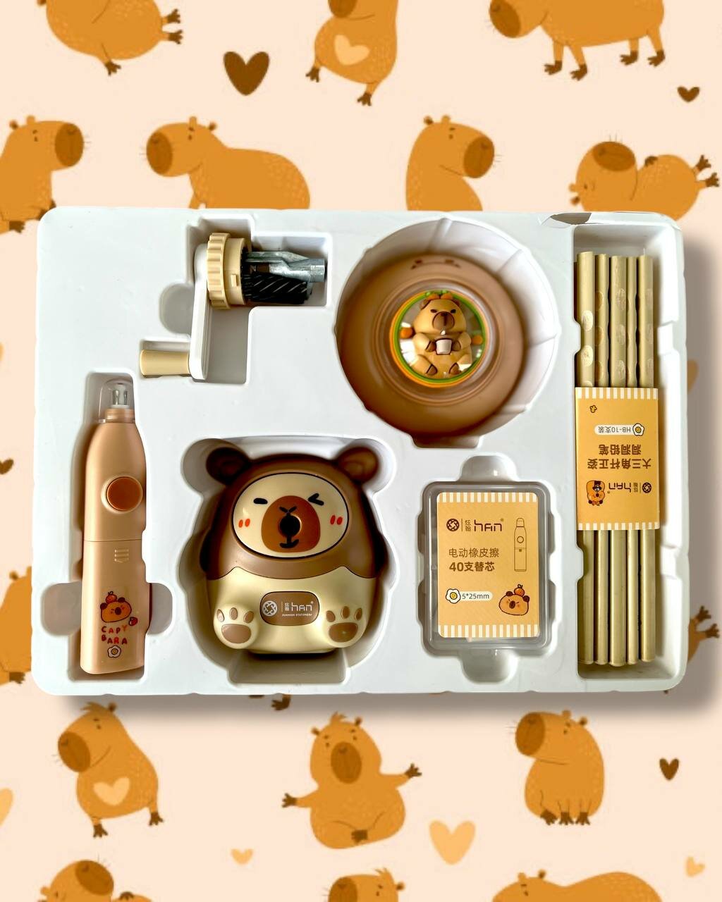 Купить Канцелярский Электрический Набор "Капибала", 9 Предметов, Школа, Заводной Механизм