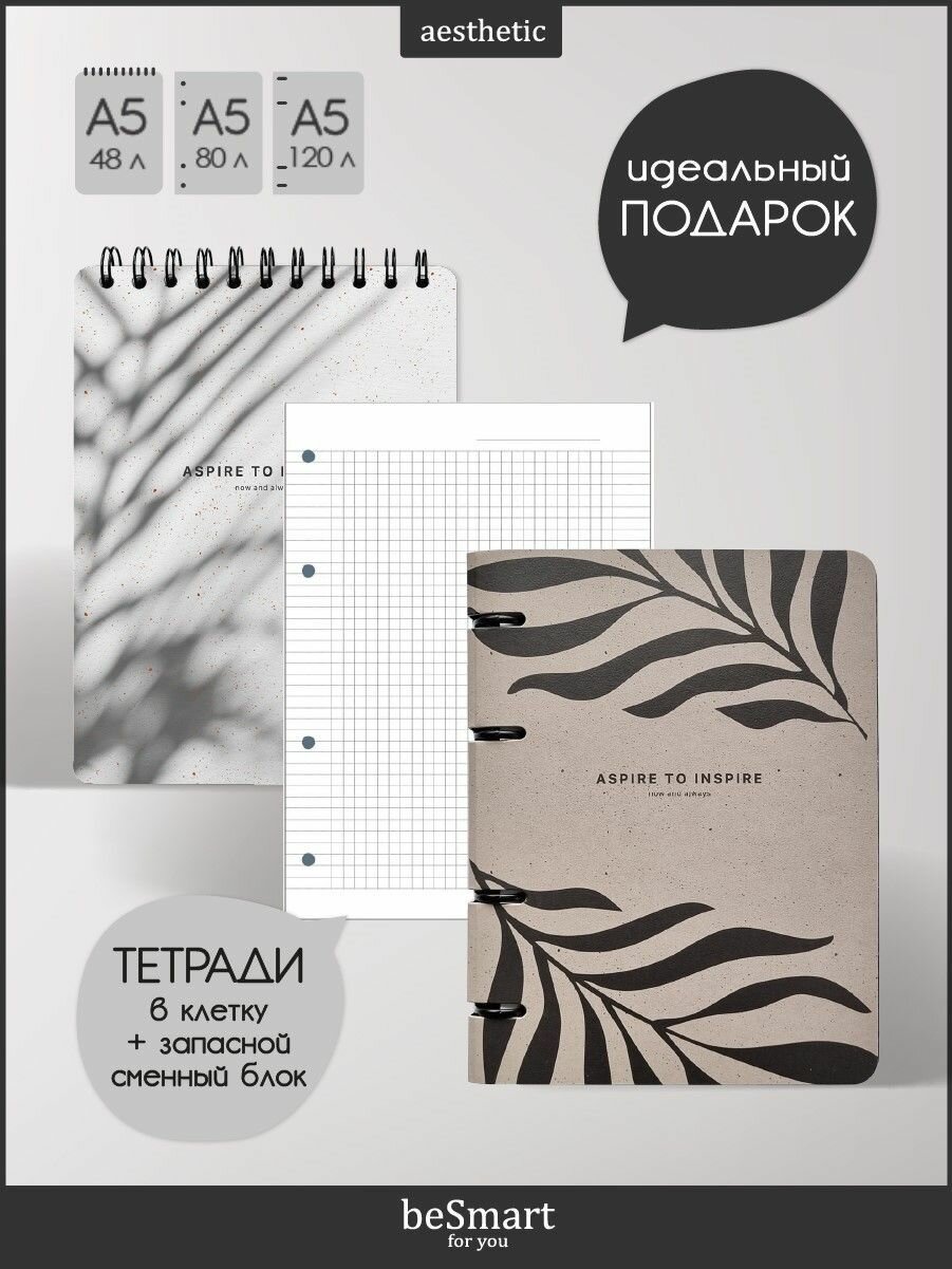 Купить Подарочный канцелярский набор Be Smart №1: тетрадь А5 на кольцах на 120л, сменный блок А5 на 80л, блокнот А5 на спирали на 50л
