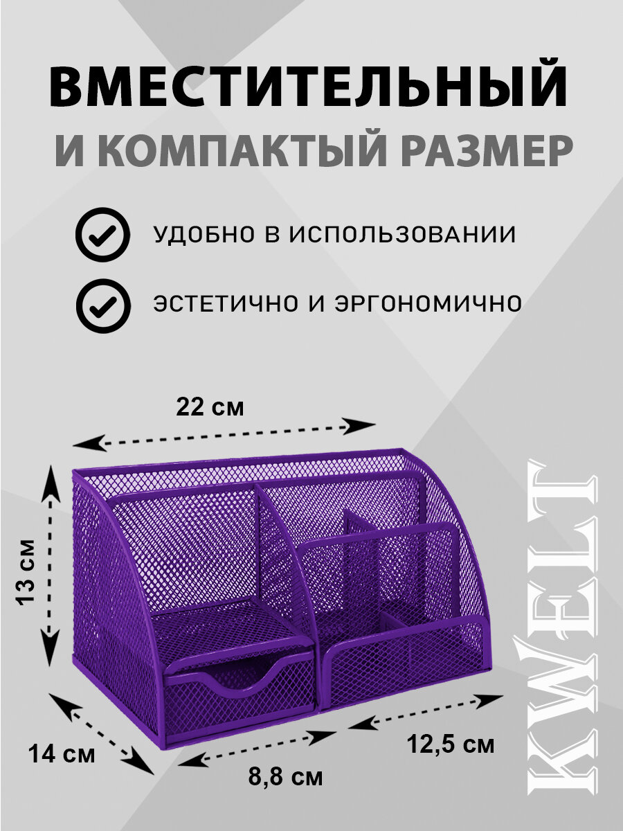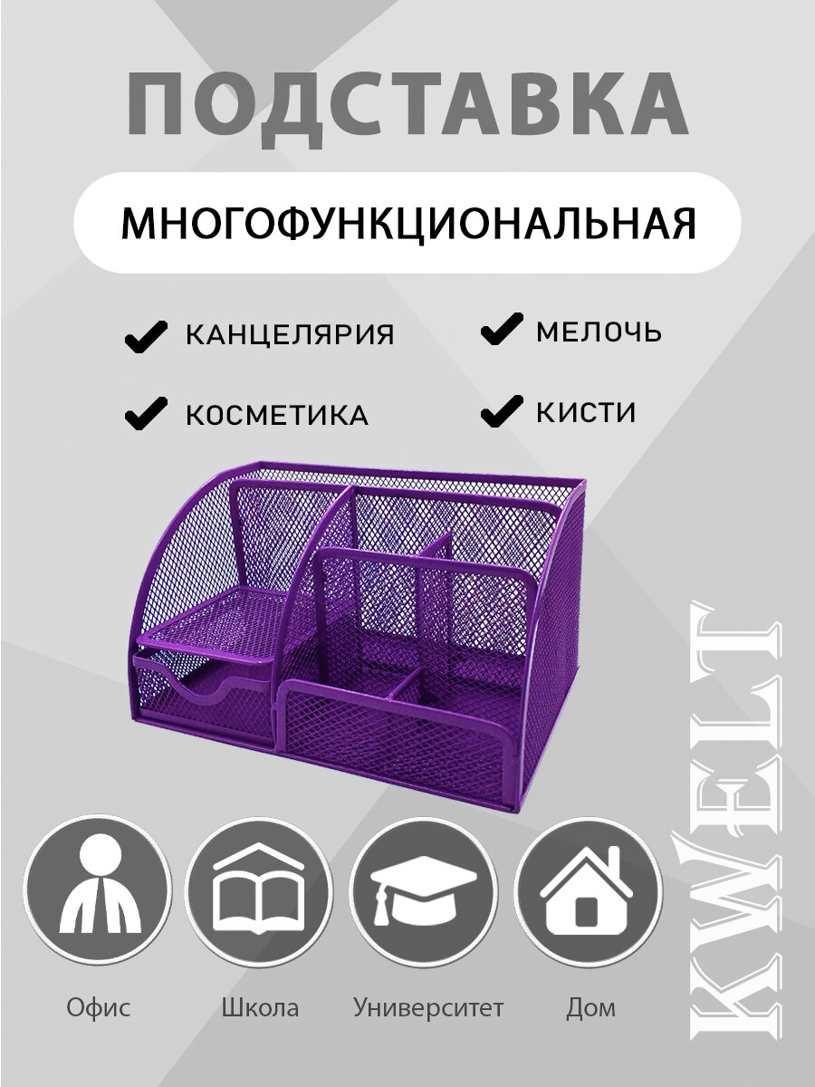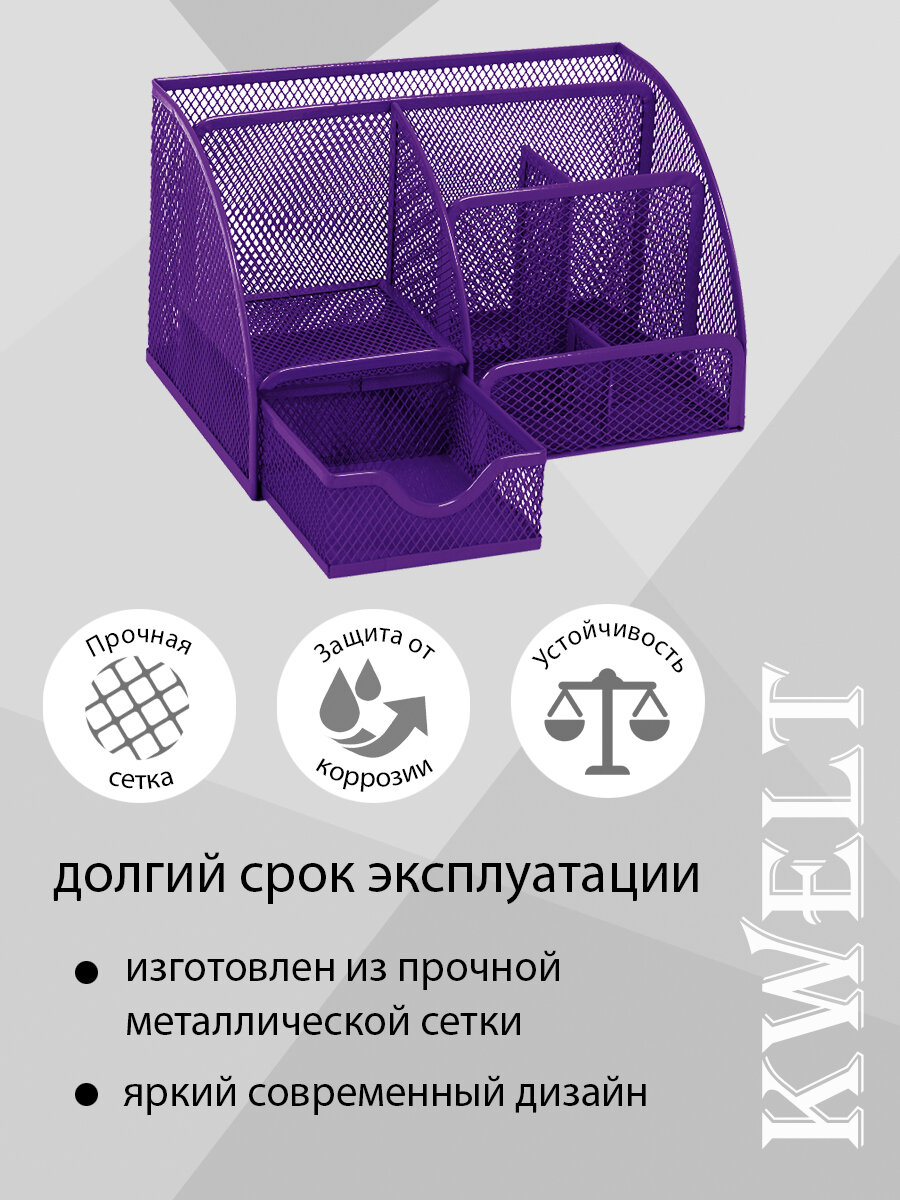 Купить Подставка " KWELT " 7 отделений (1 выдвижное), металлическая, сетчатая, фиолетовая, картонная упаковка 22*14*13см