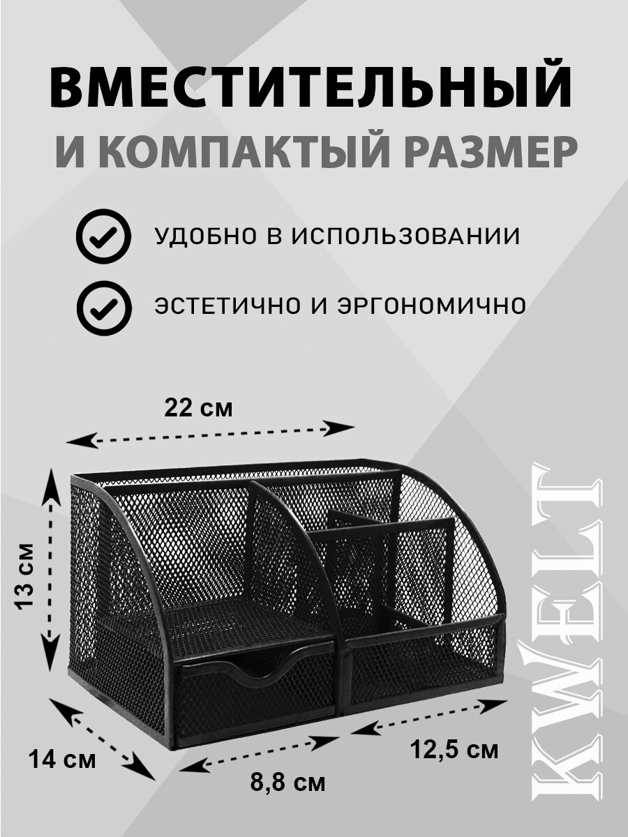 Купить Подставка " KWELT " 7 отделений (1 выдвижное), металлическая, сетчатая, черная, картонная упаковка 22*14*13см