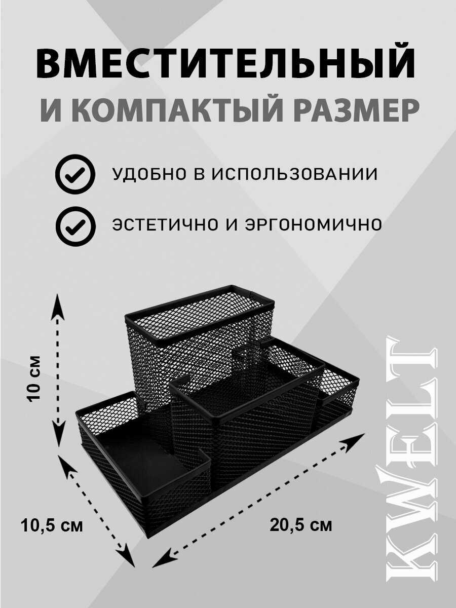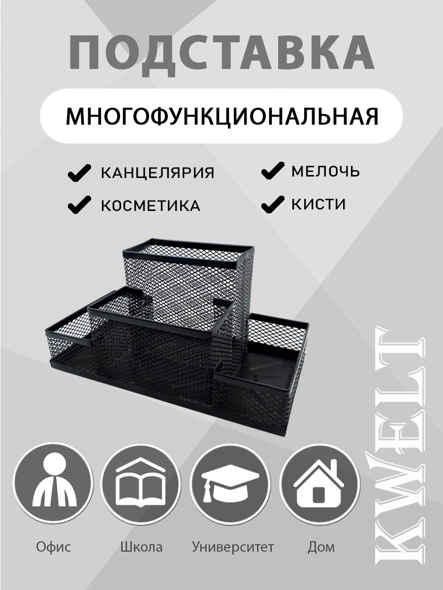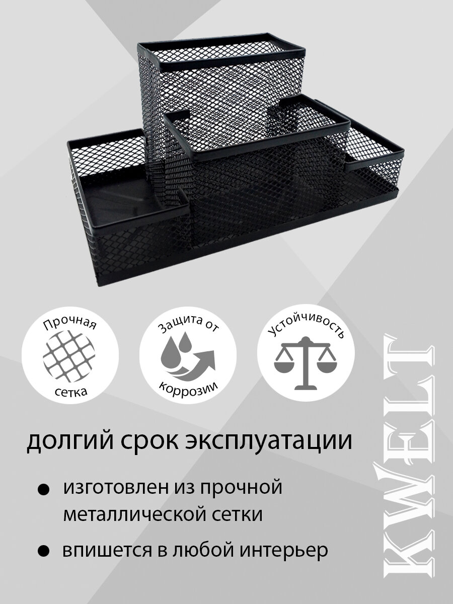 Подставка " KWELT " 4 отделения, 20,5*10,5*10см, металлическая, сетчатая, черная интересное: