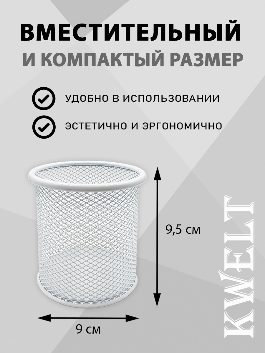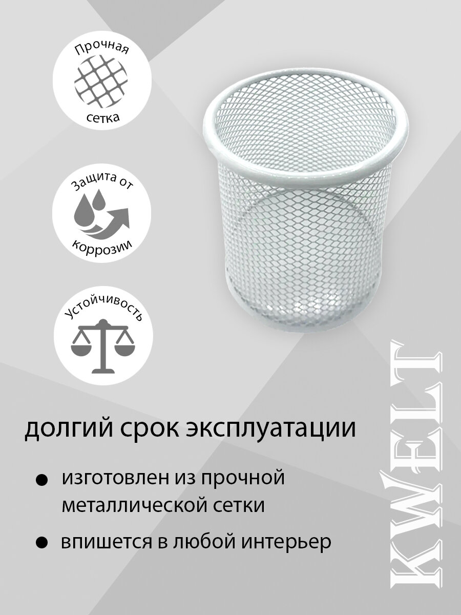 Купить Стакан KWELT, металлический, сетчатый, круглый, 8 х 9,5 см, белый