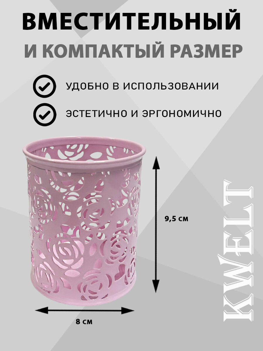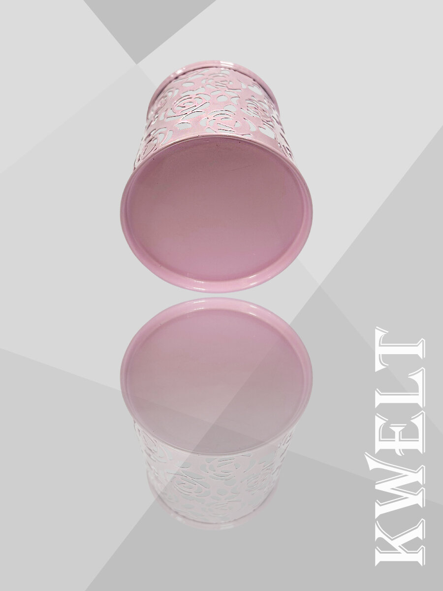Купить Стакан-подставка " KWELT " 8*9,5см, металлический ажурный, цветы, круглый, розовый