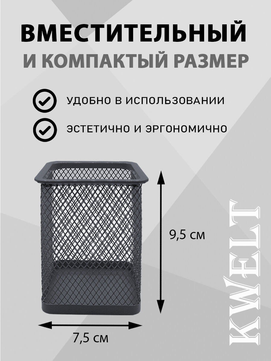 Стакан KWELT, металлический, сетчатый, квадратный, 7,5 х 7,5 х 9,5 см, черный