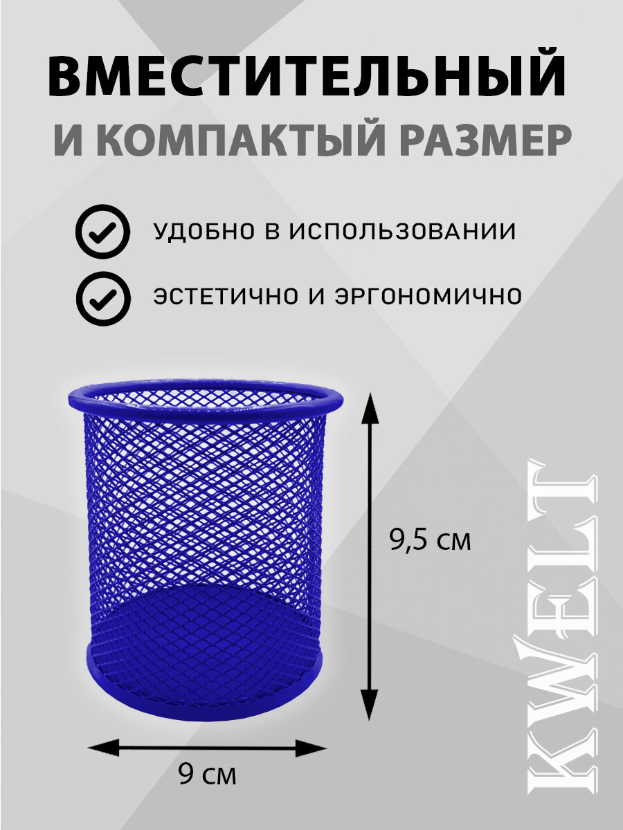 Купить Стакан KWELT, металлический, сетчатый, круглый, 8 х 9,5 см, синий