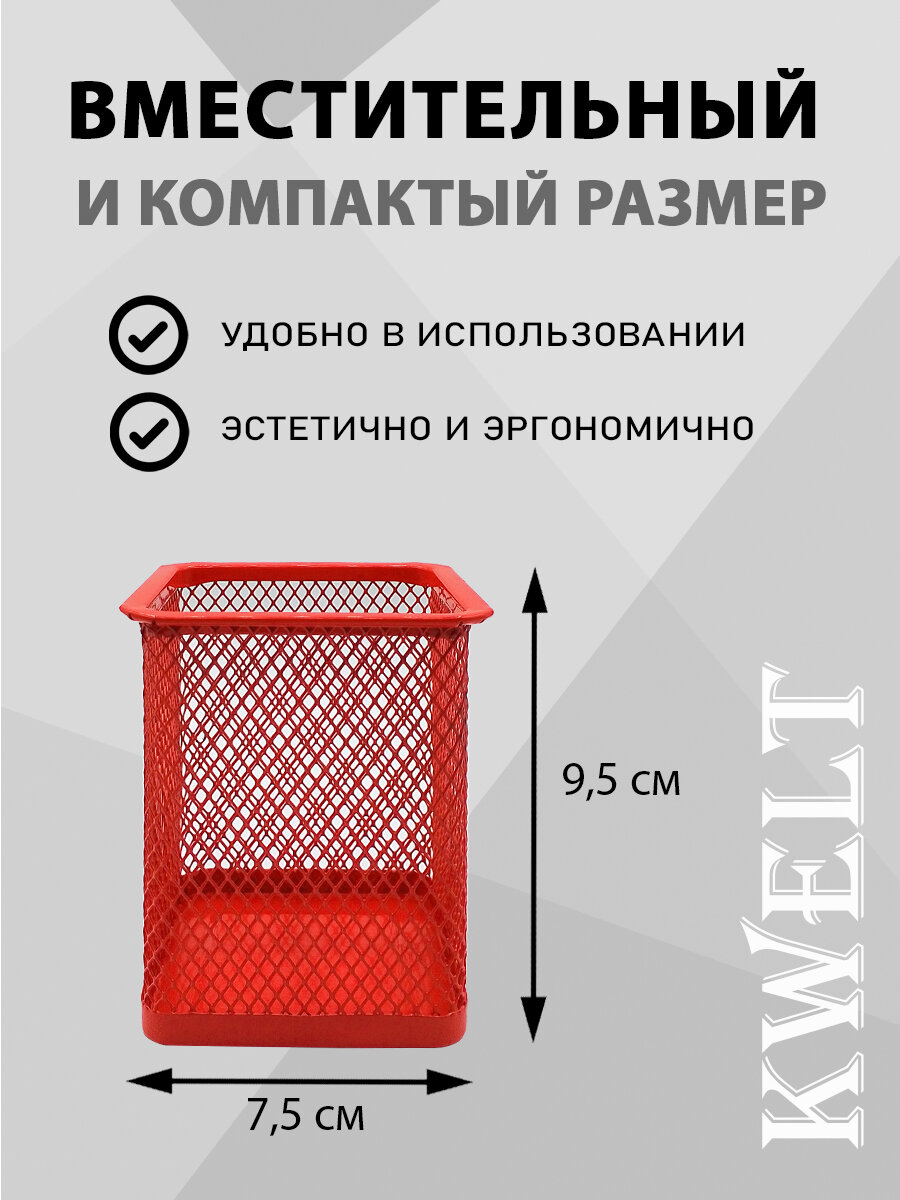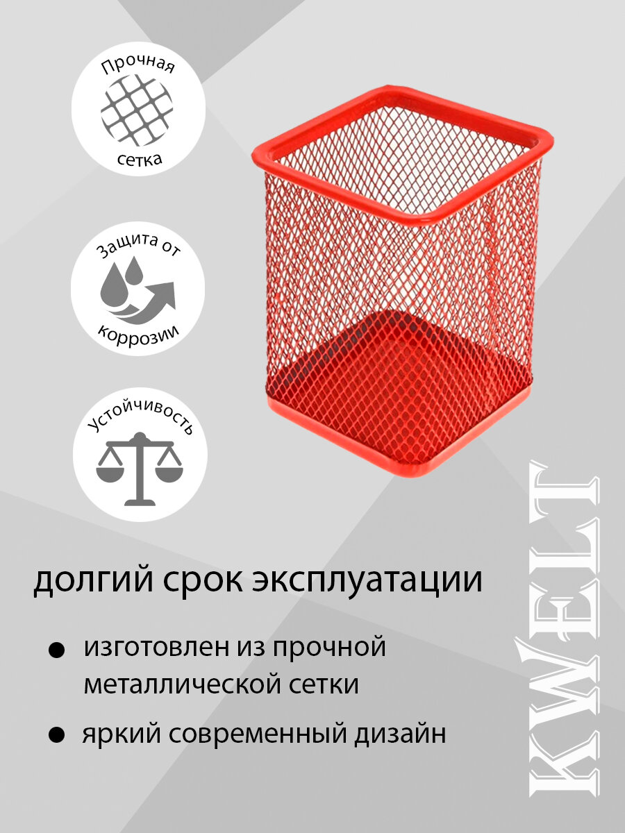 Купить Стакан KWELT, металлический, сетчатый, квадратный, 7,5 х 7,5 х 9,5 см, красный
