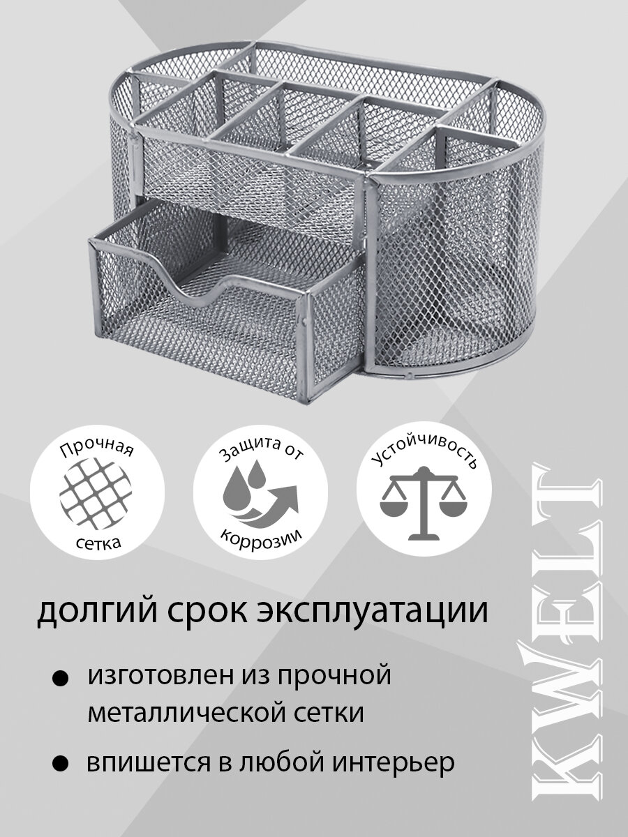 Купить Подставка " KWELT " 9 отделений (1 выдвижное), металлическая, сетчатая, серебро, картонная упаковка 22*11*10,5см