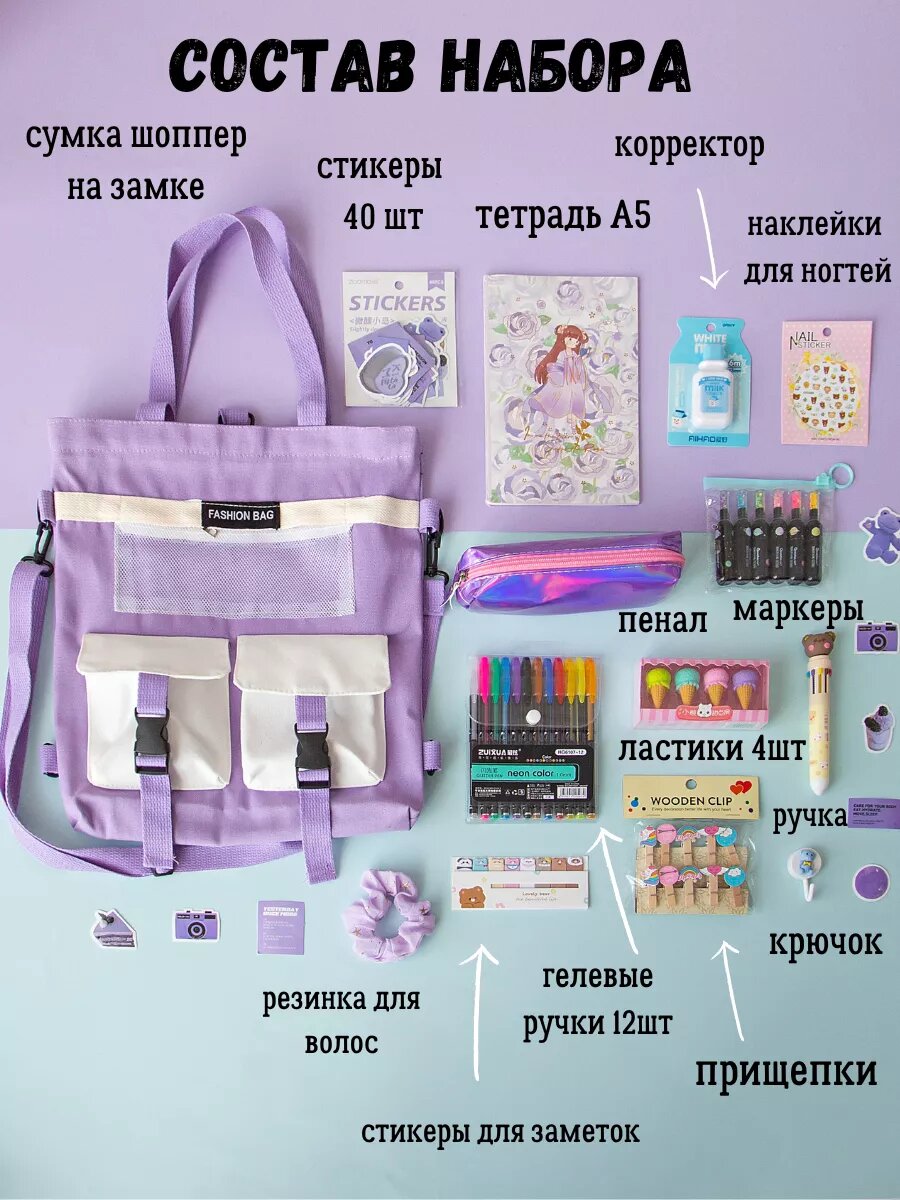 Канцелярский подарочный набор Играй Мечтай, сиреневый, для школы, с шоппером интересное: