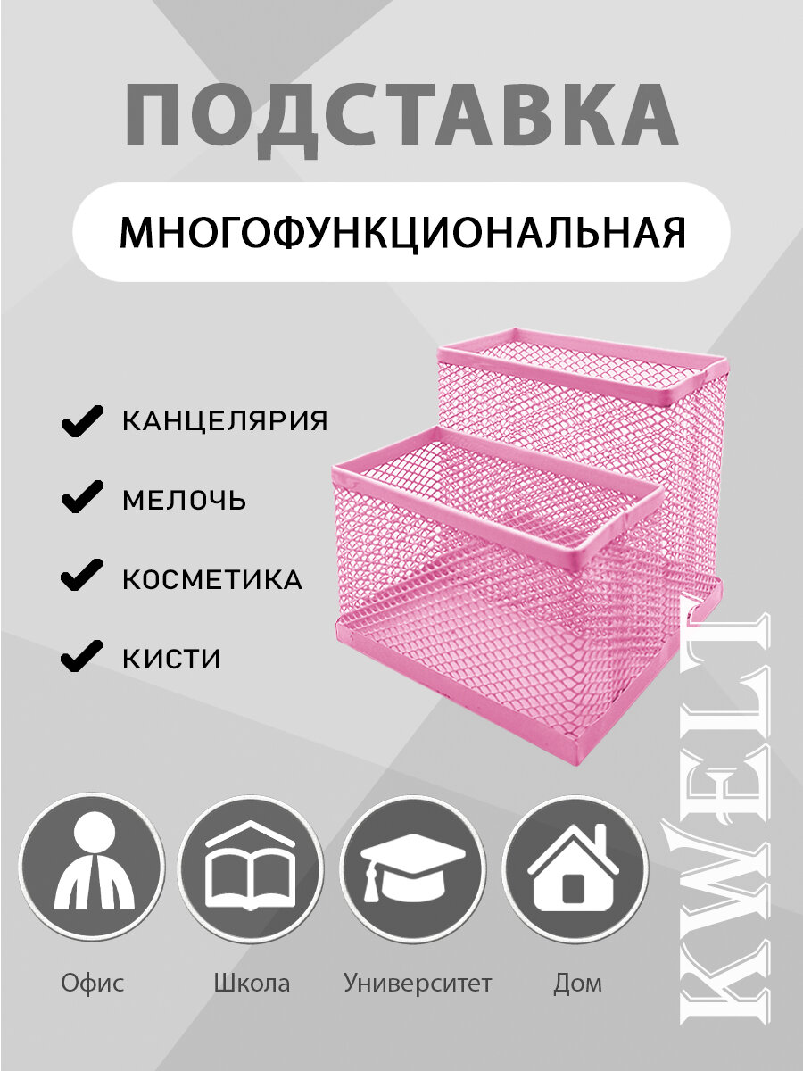 Подставка " KWELT " 2 отделения, металлическая, сетчатая, розовая интересное: