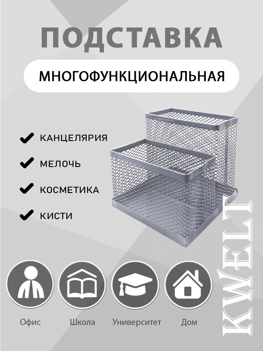 Подставка " KWELT " 2 отделения, металлическая, сетчатая, серебро интересное: