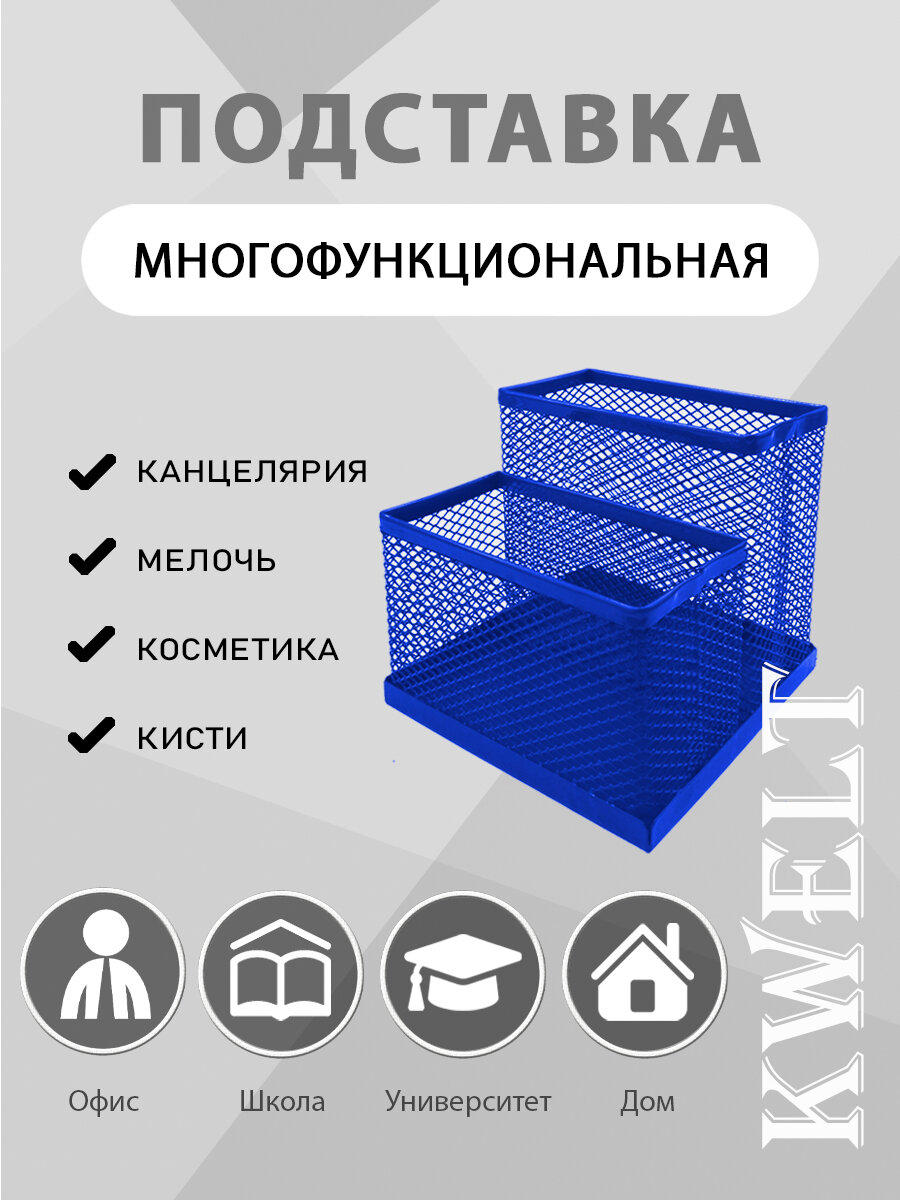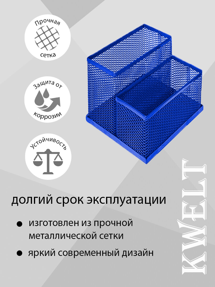 Подставка " KWELT " 2 отделения, металлическая, сетчатая, синяя интересное: