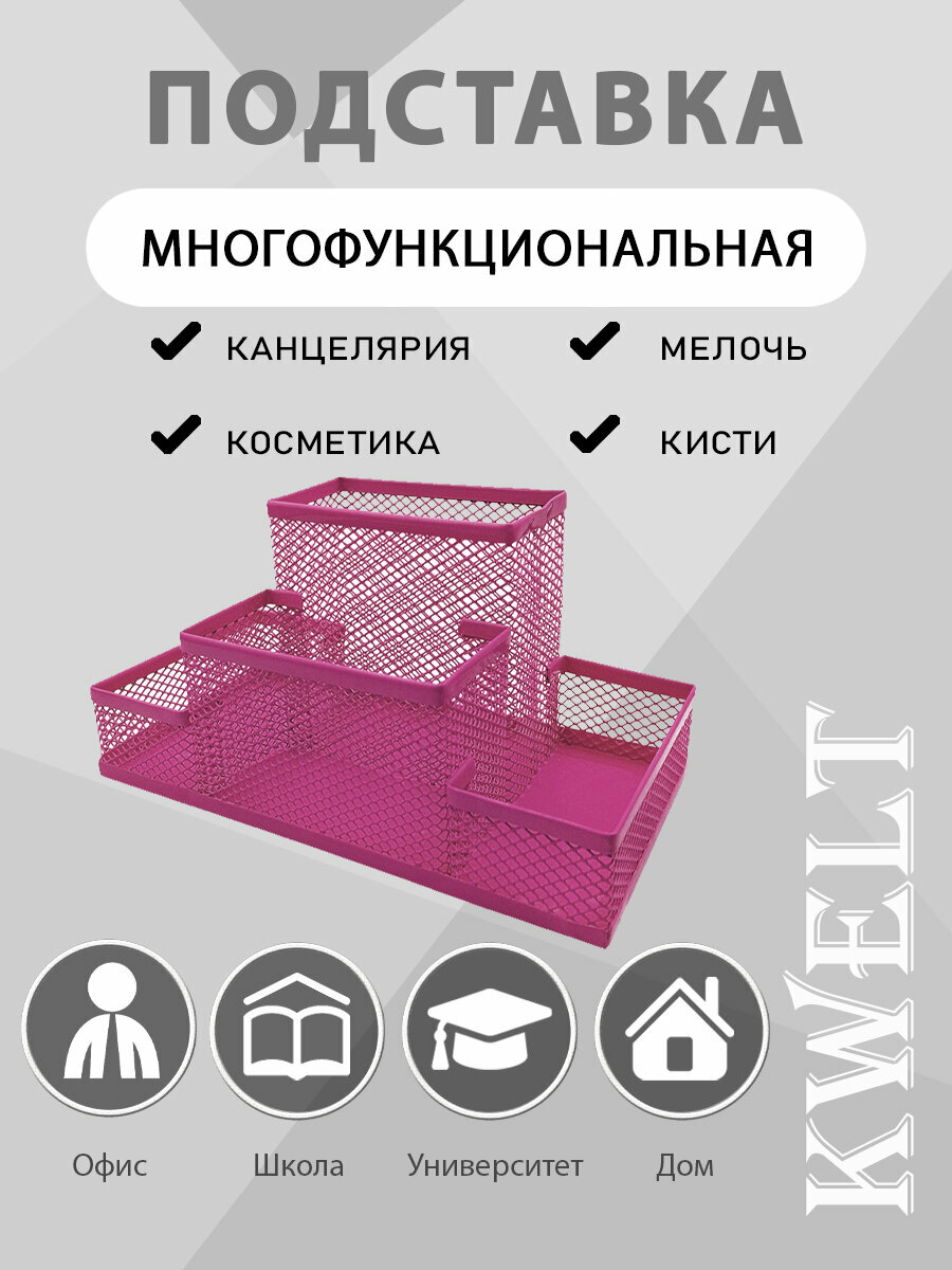 Купить Подставка " KWELT " 4 отделения, 20,5*10,5*10см, металлическая, сетчатая, фуксия