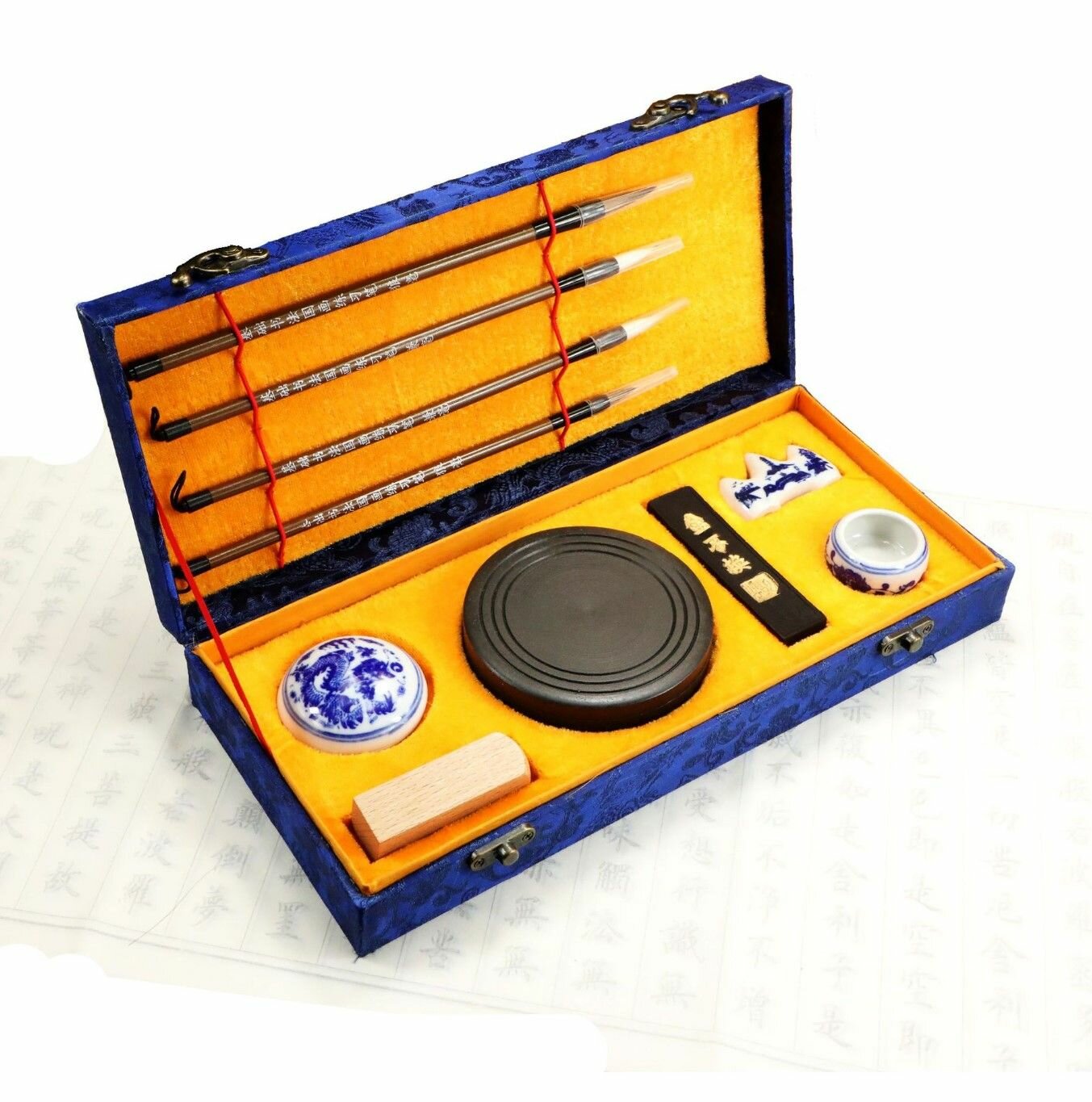 Купить Подарочный набор для китайской каллиграфии синий, обучение письму